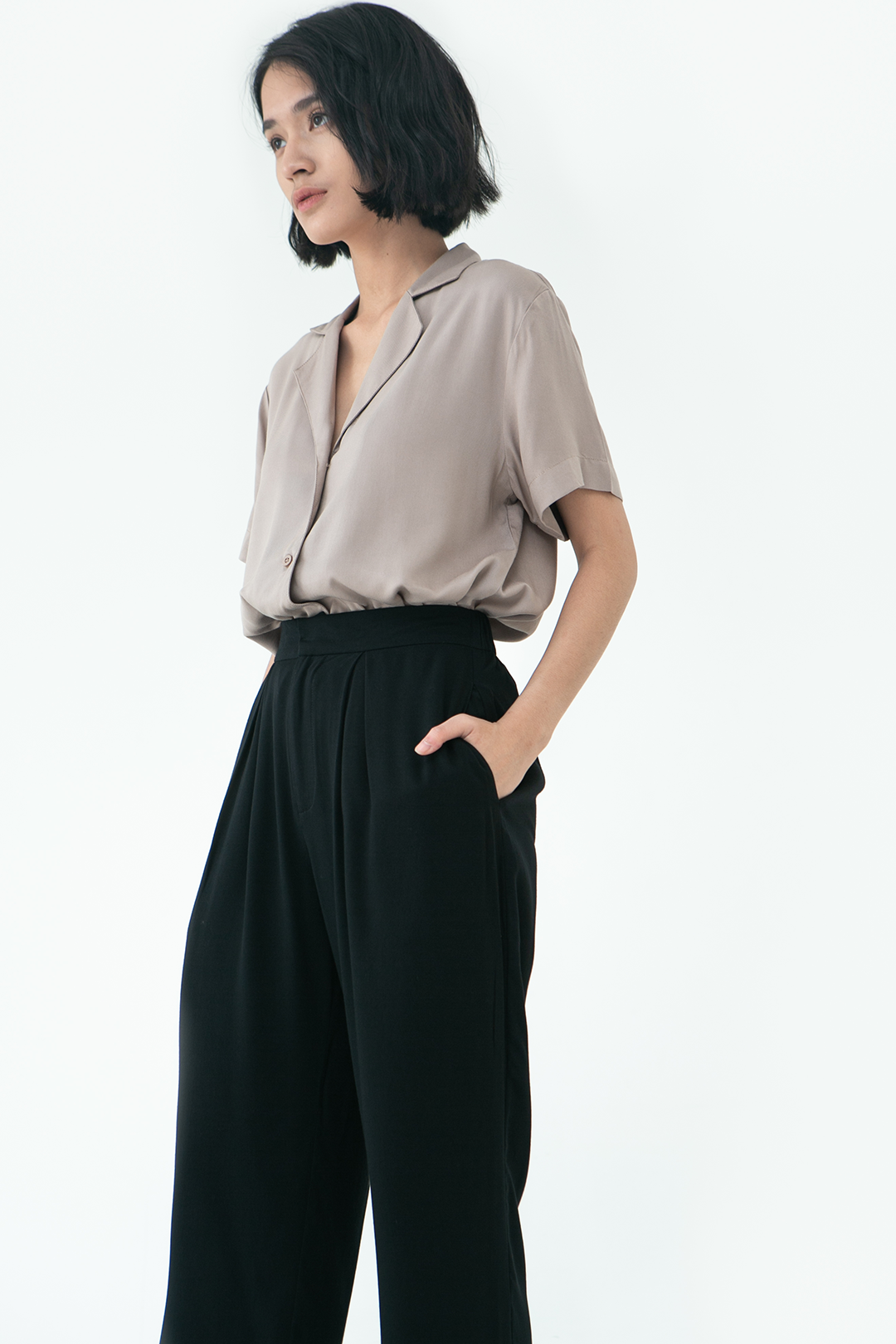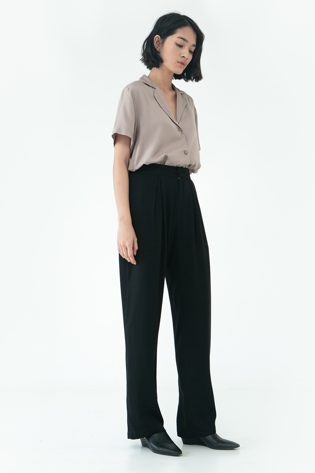 Notch collar top with front button fastening. Breathable fabric for your comfort.