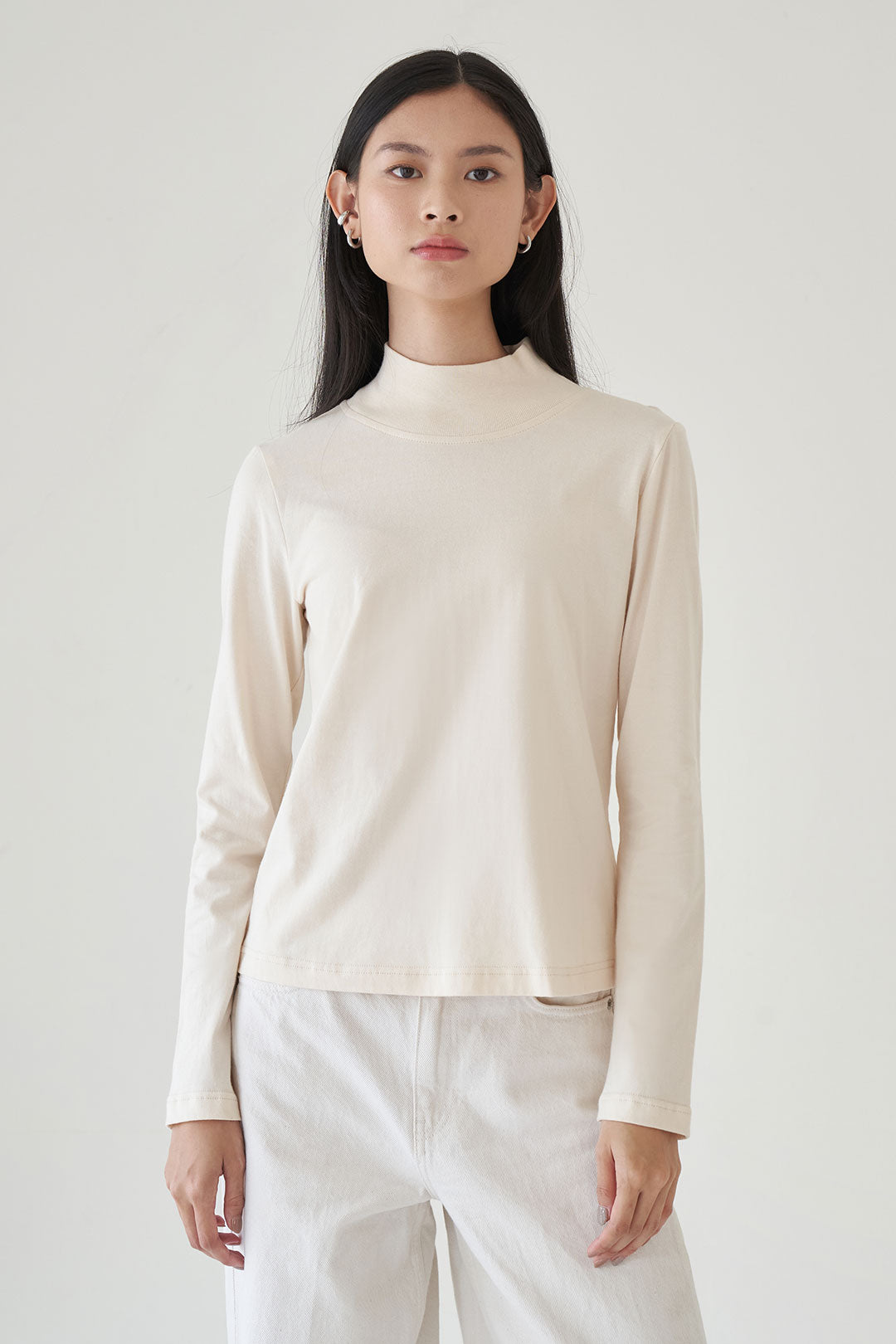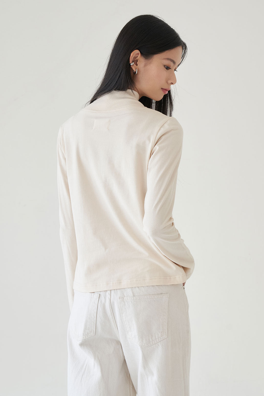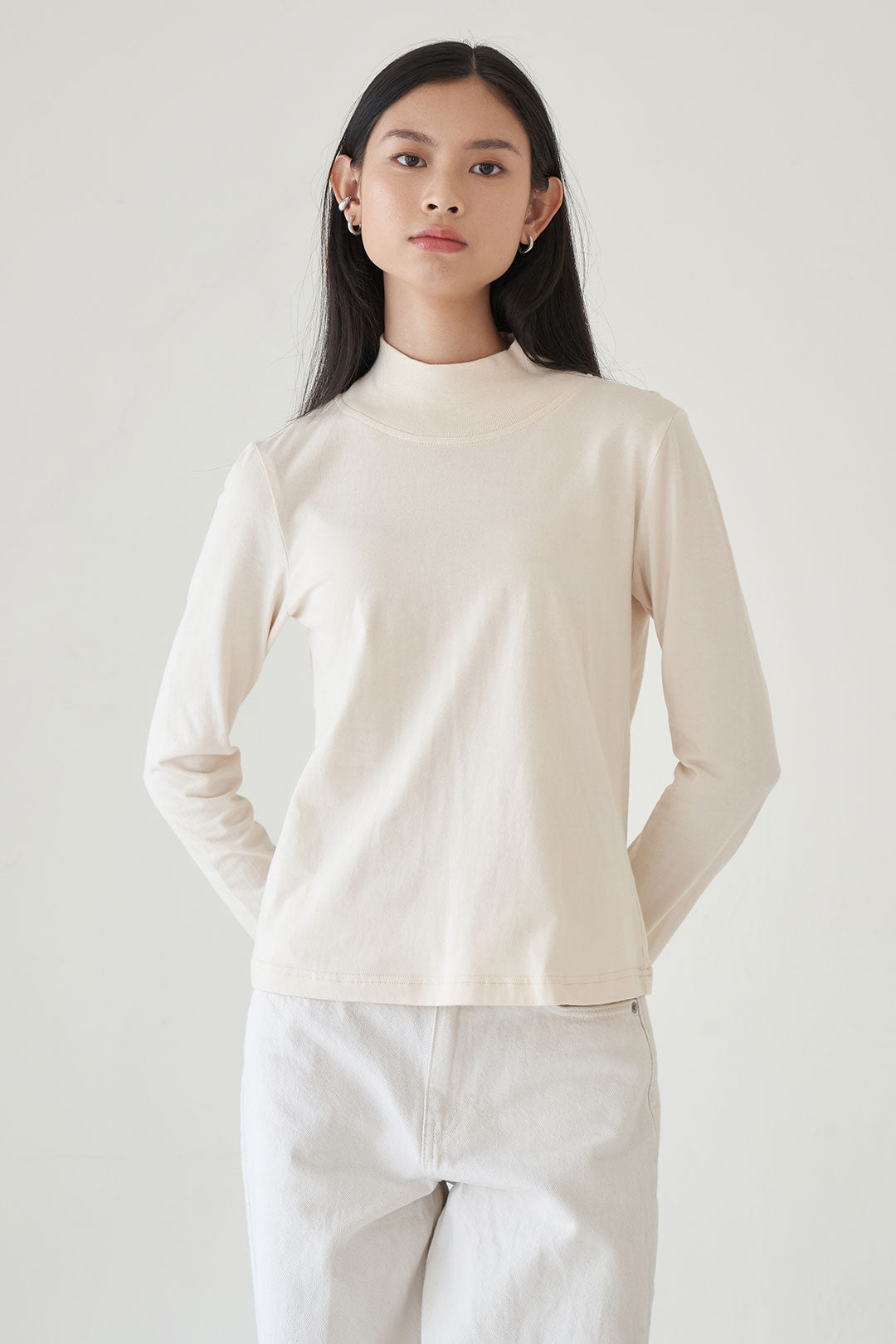 - A clean, long sleeve top with a slightly higher neckline for a modest yet modern look