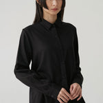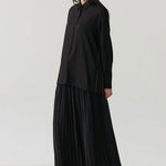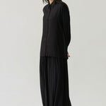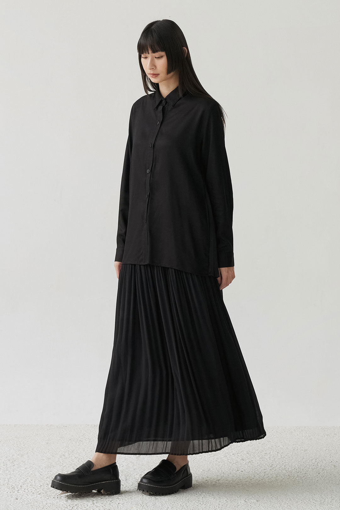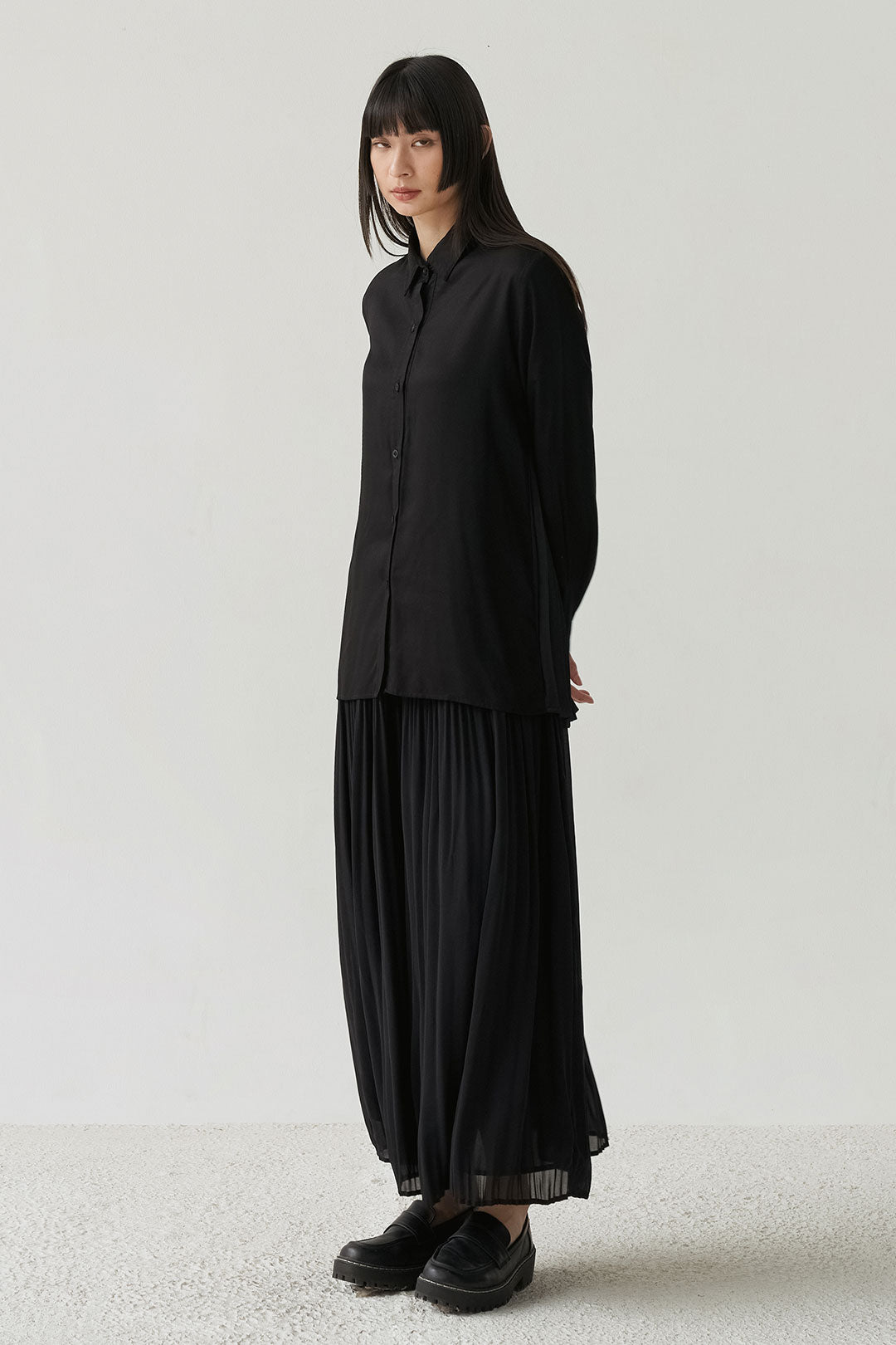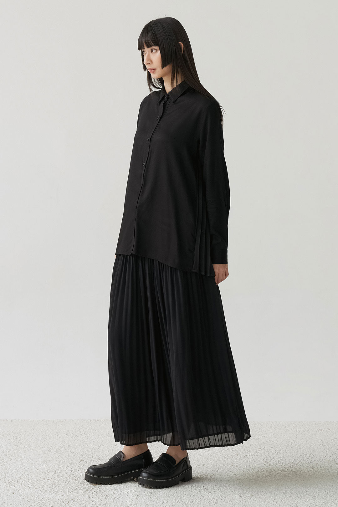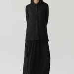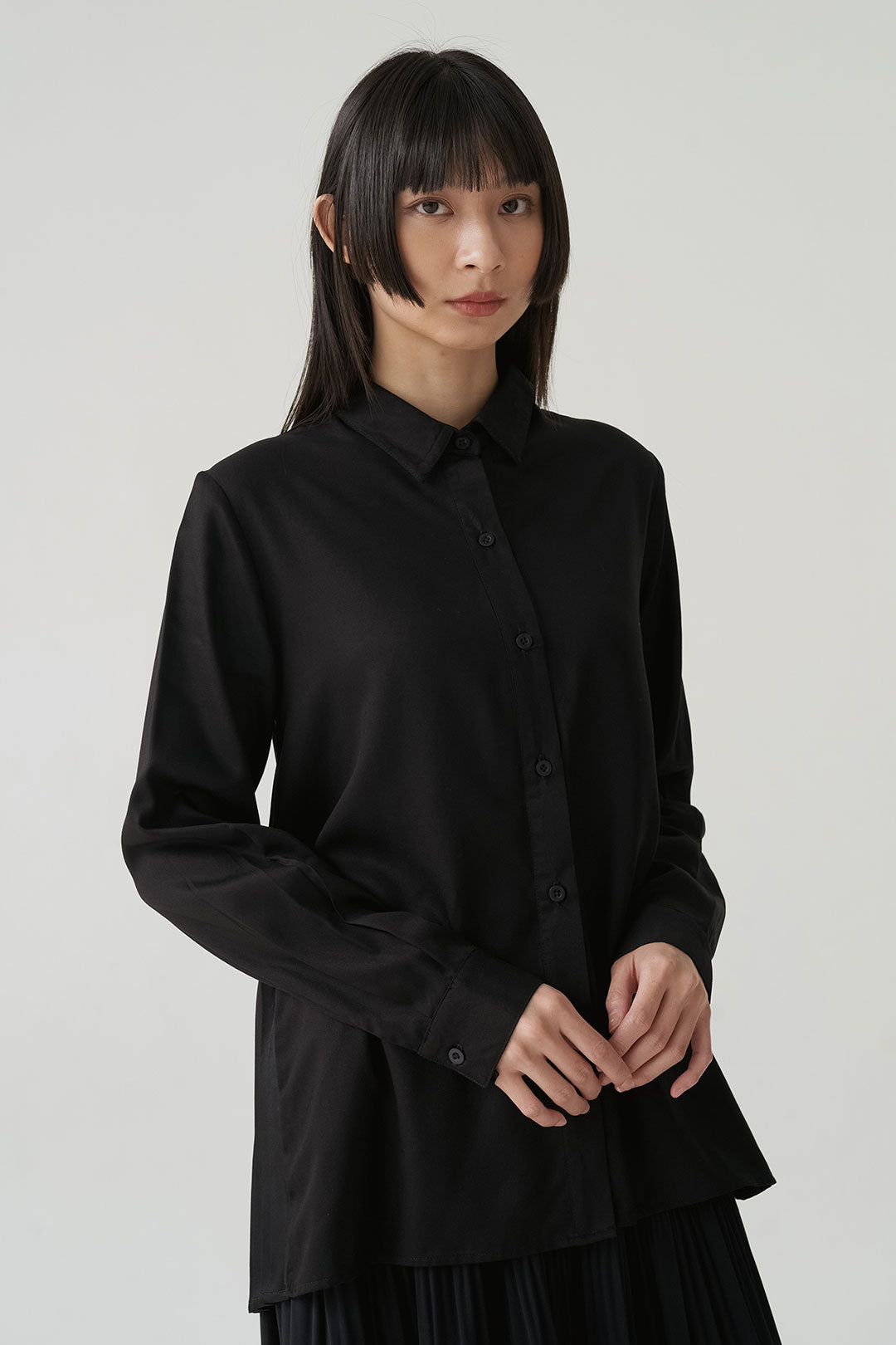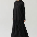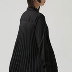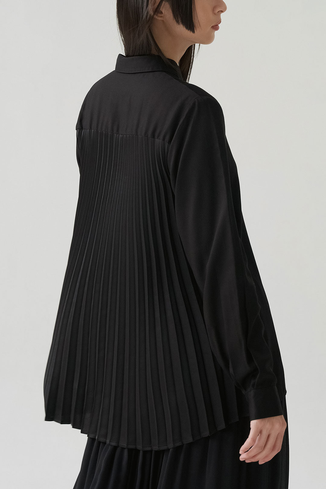 - Button-down shirt with a clean front and pleated back panel, structured yet relaxed