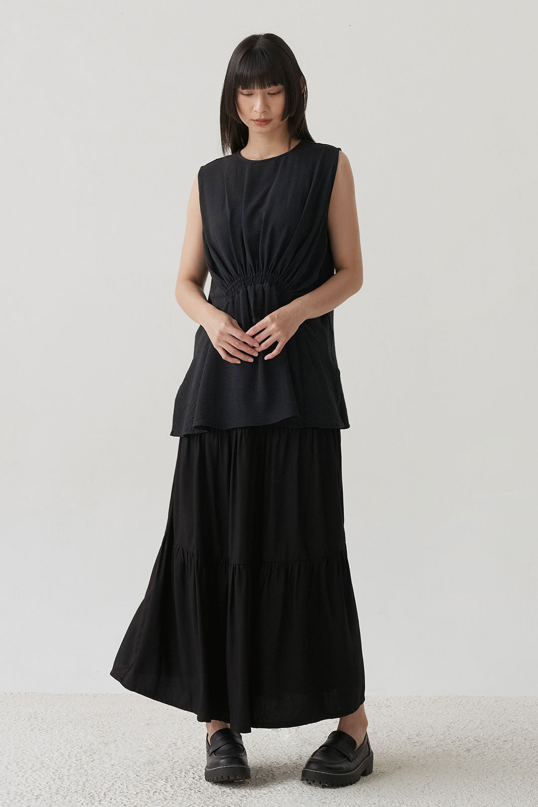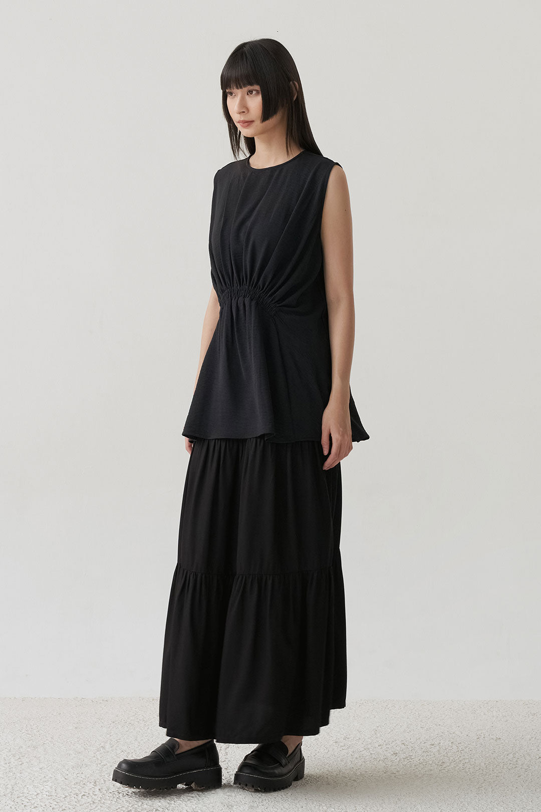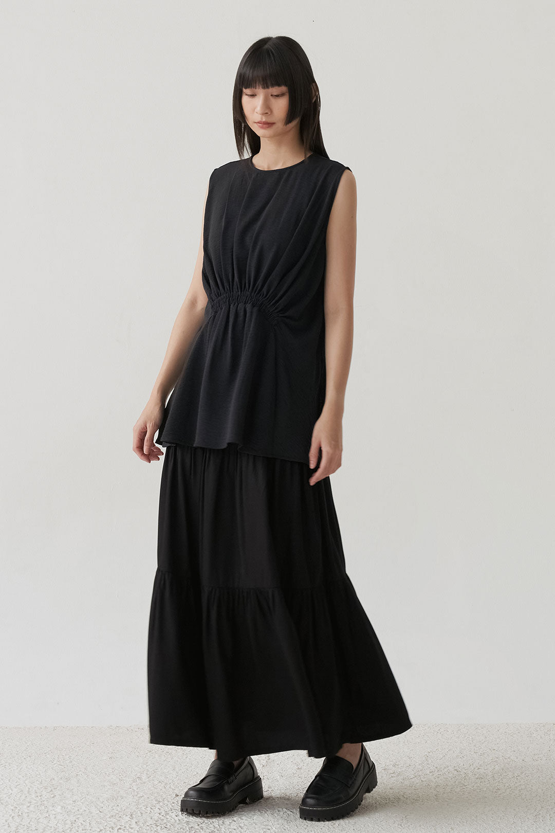- Works well with pleated skirts for a tonal look, or tapered trousers for contrast in shape