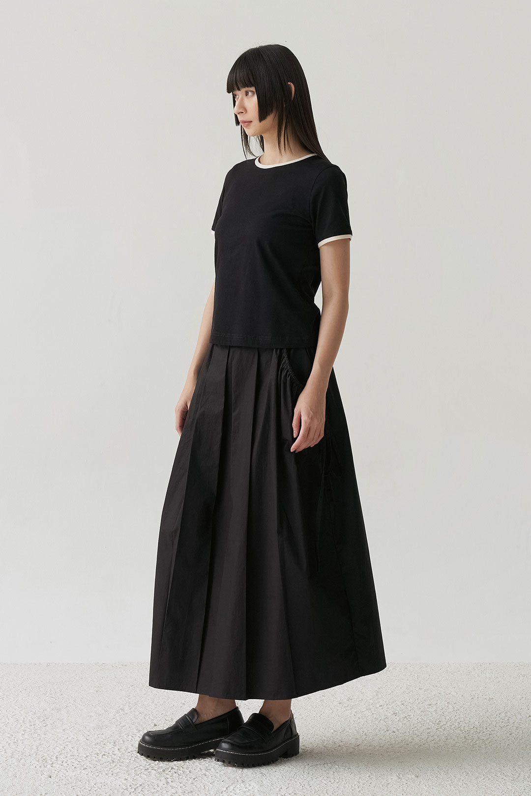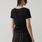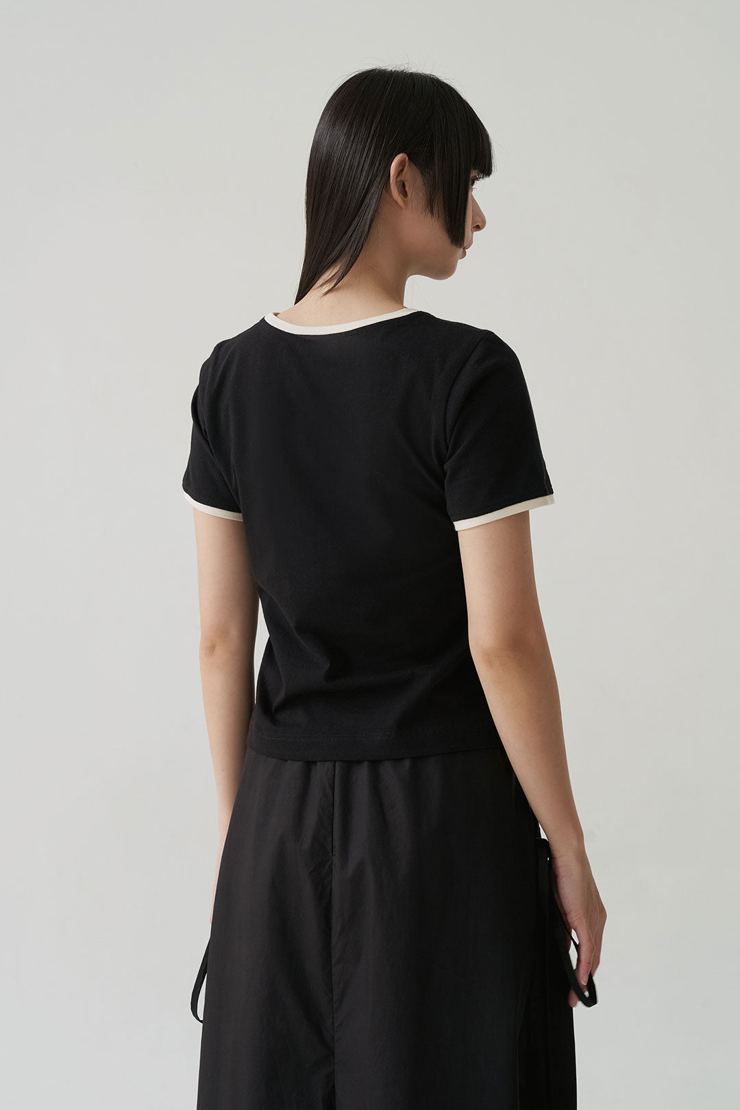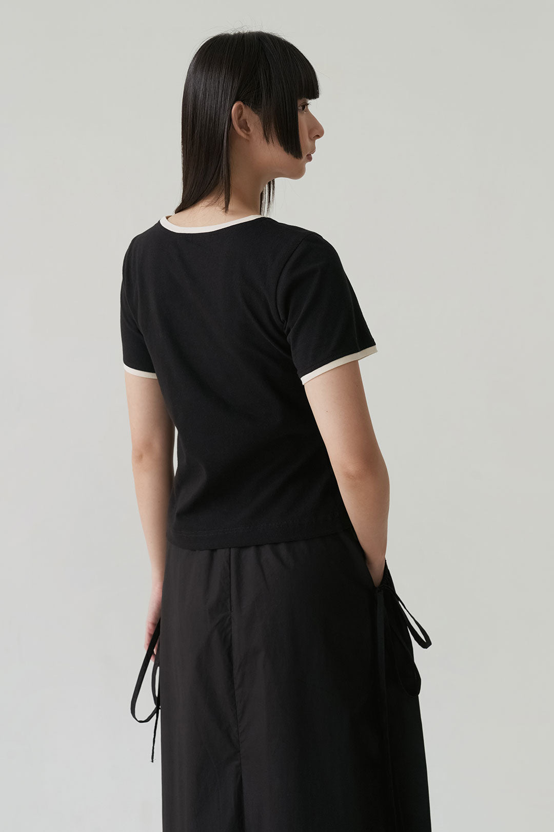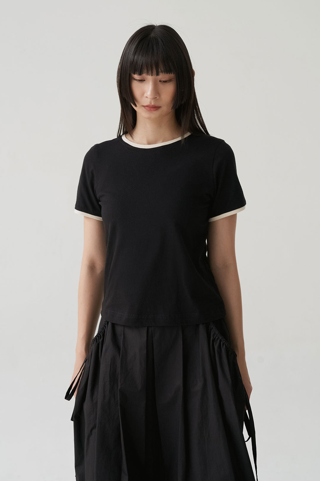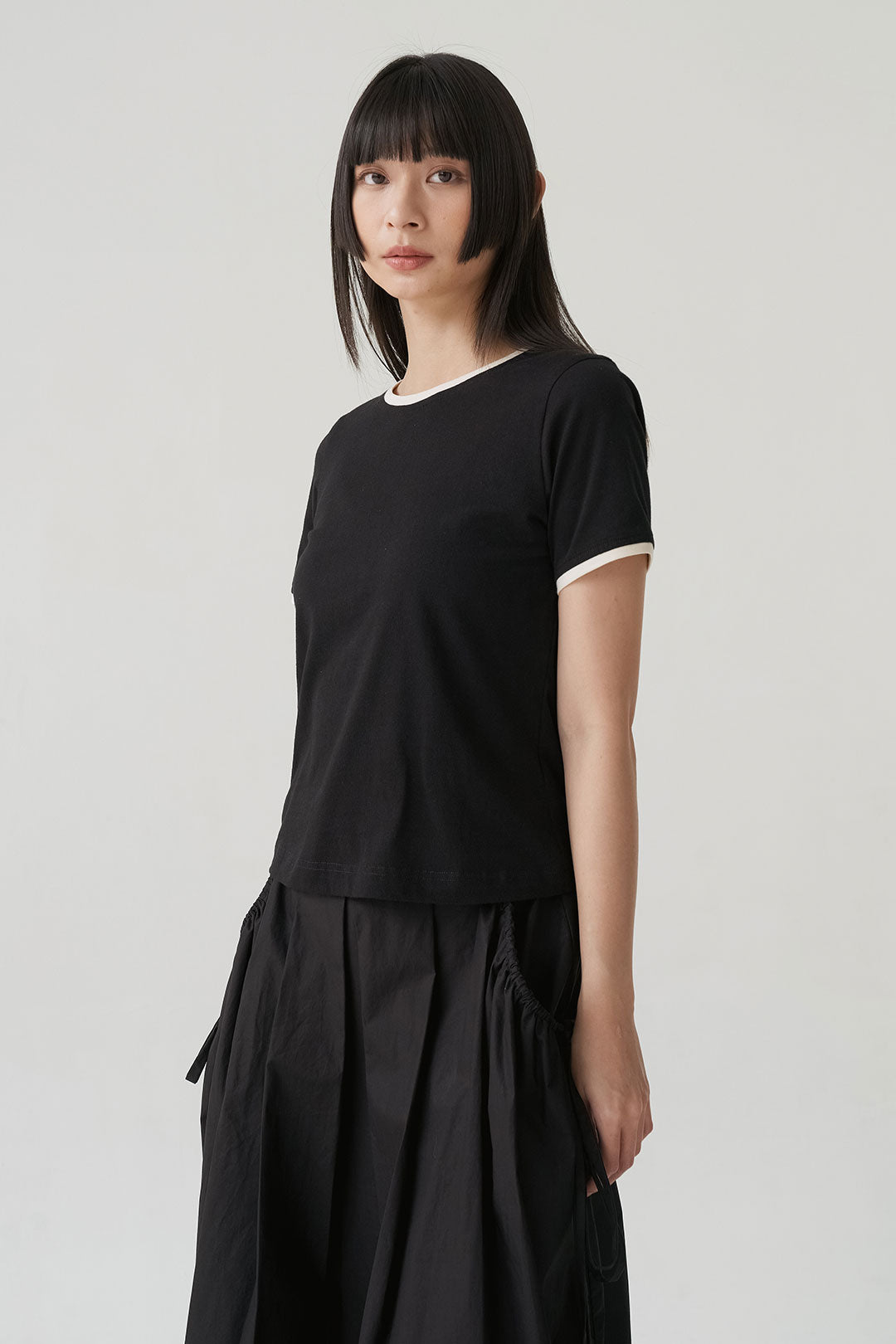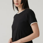 - A classic crewneck tee with contrasting collar and sleeve trims