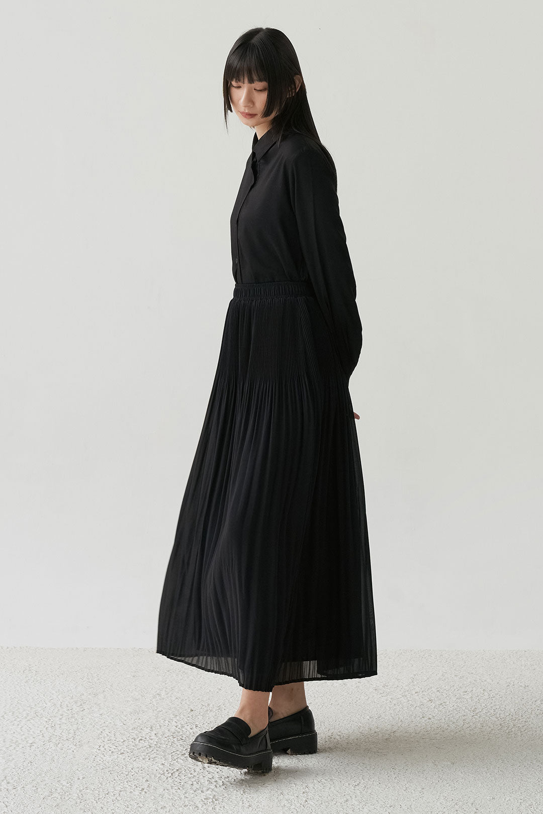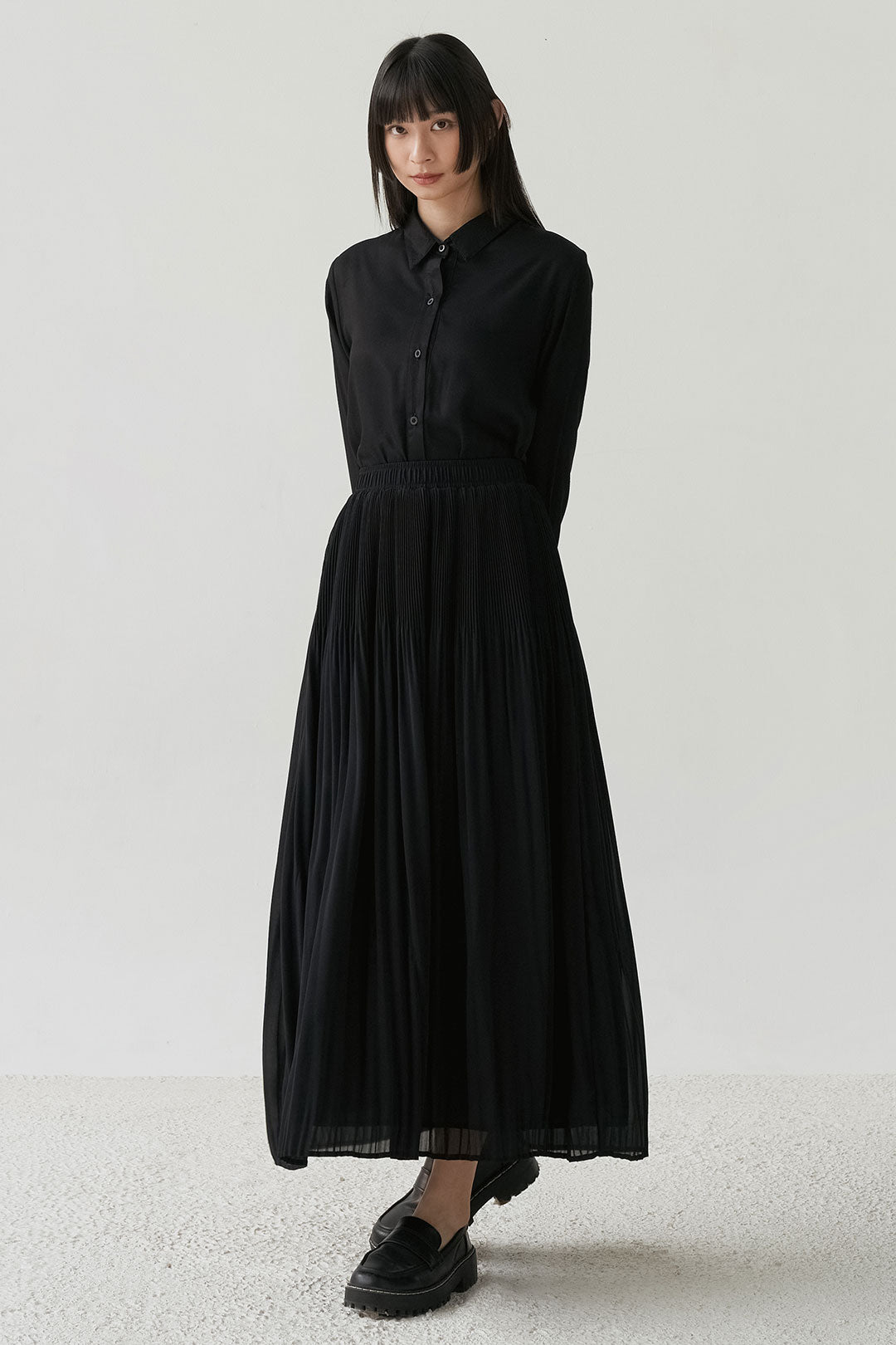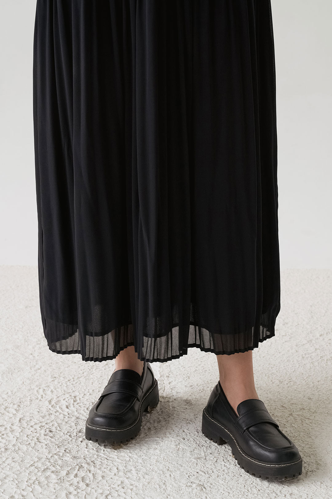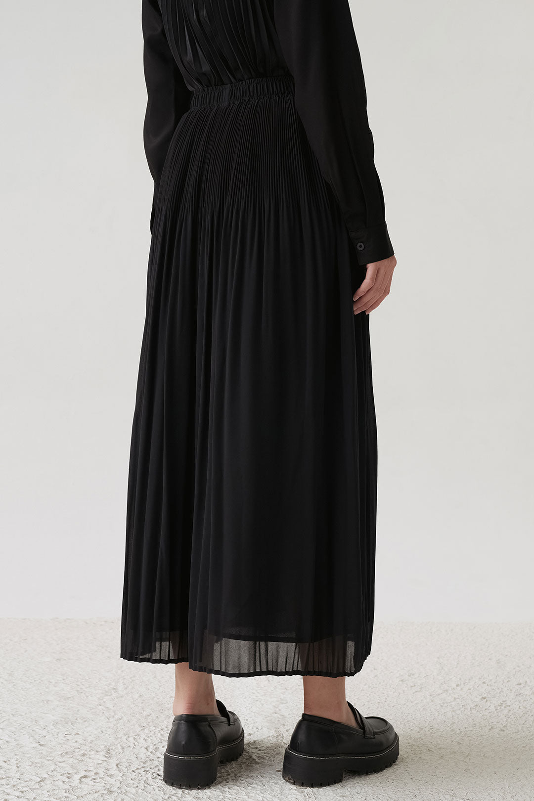 - Flowing pleated skirt that moves softly with every step