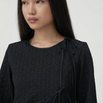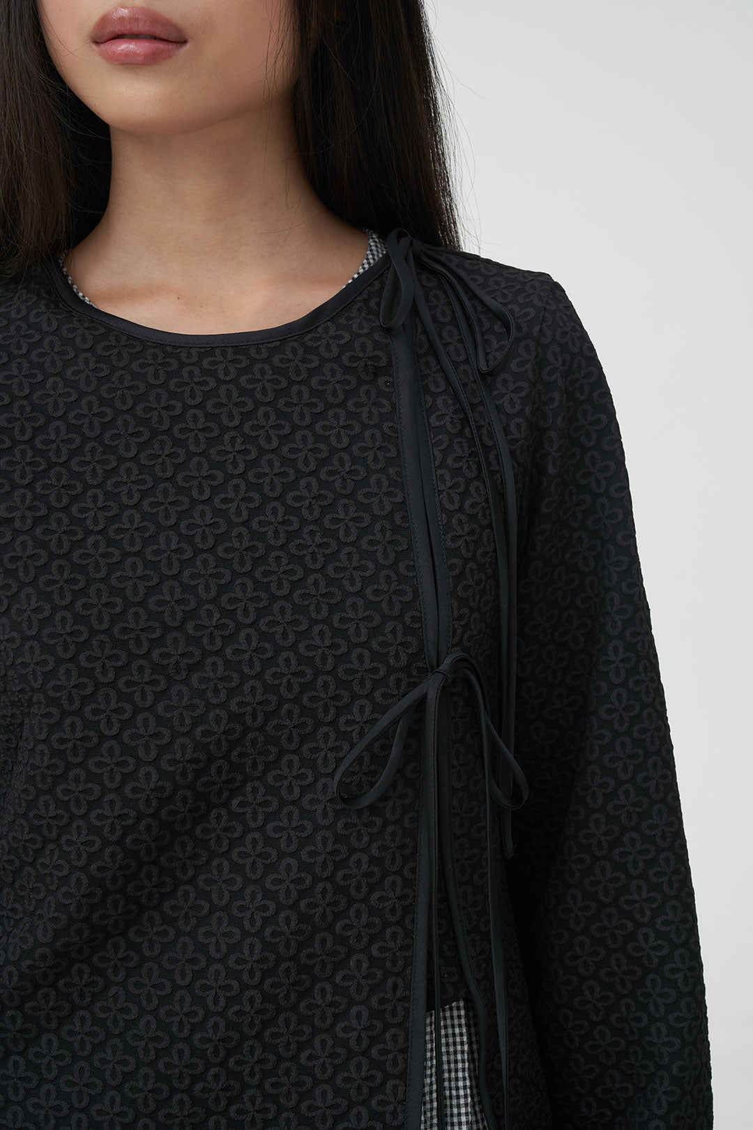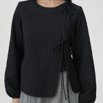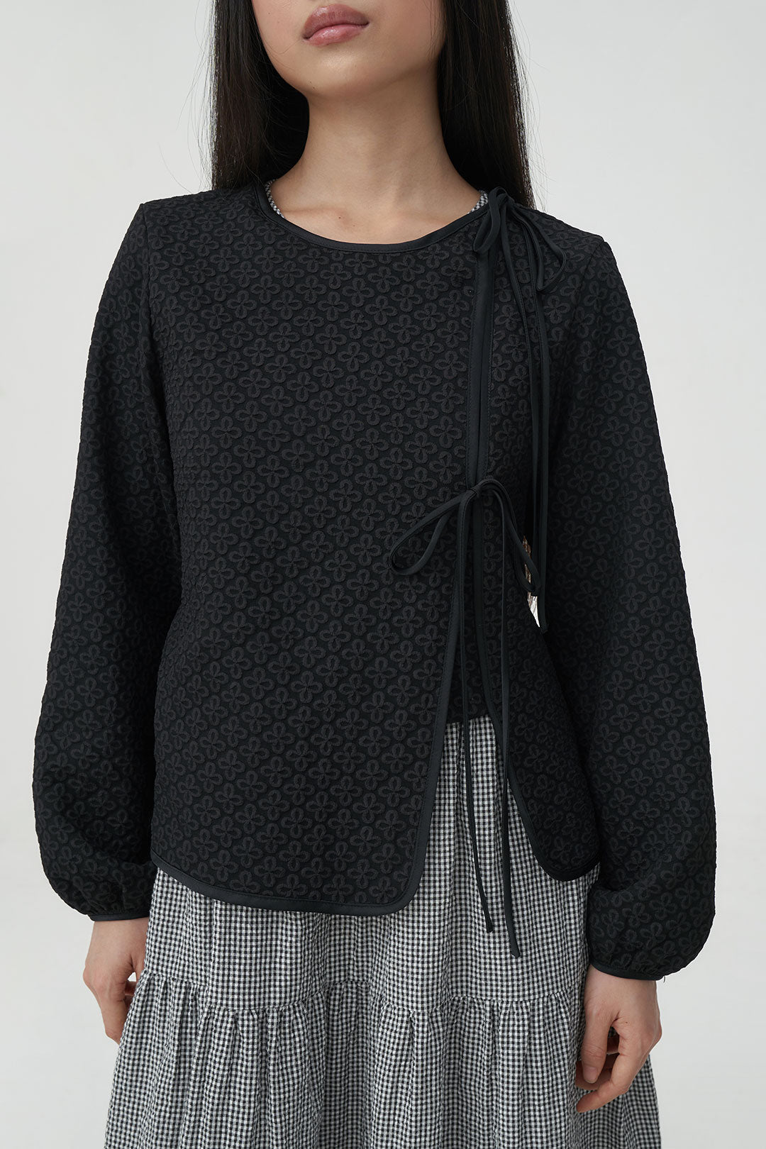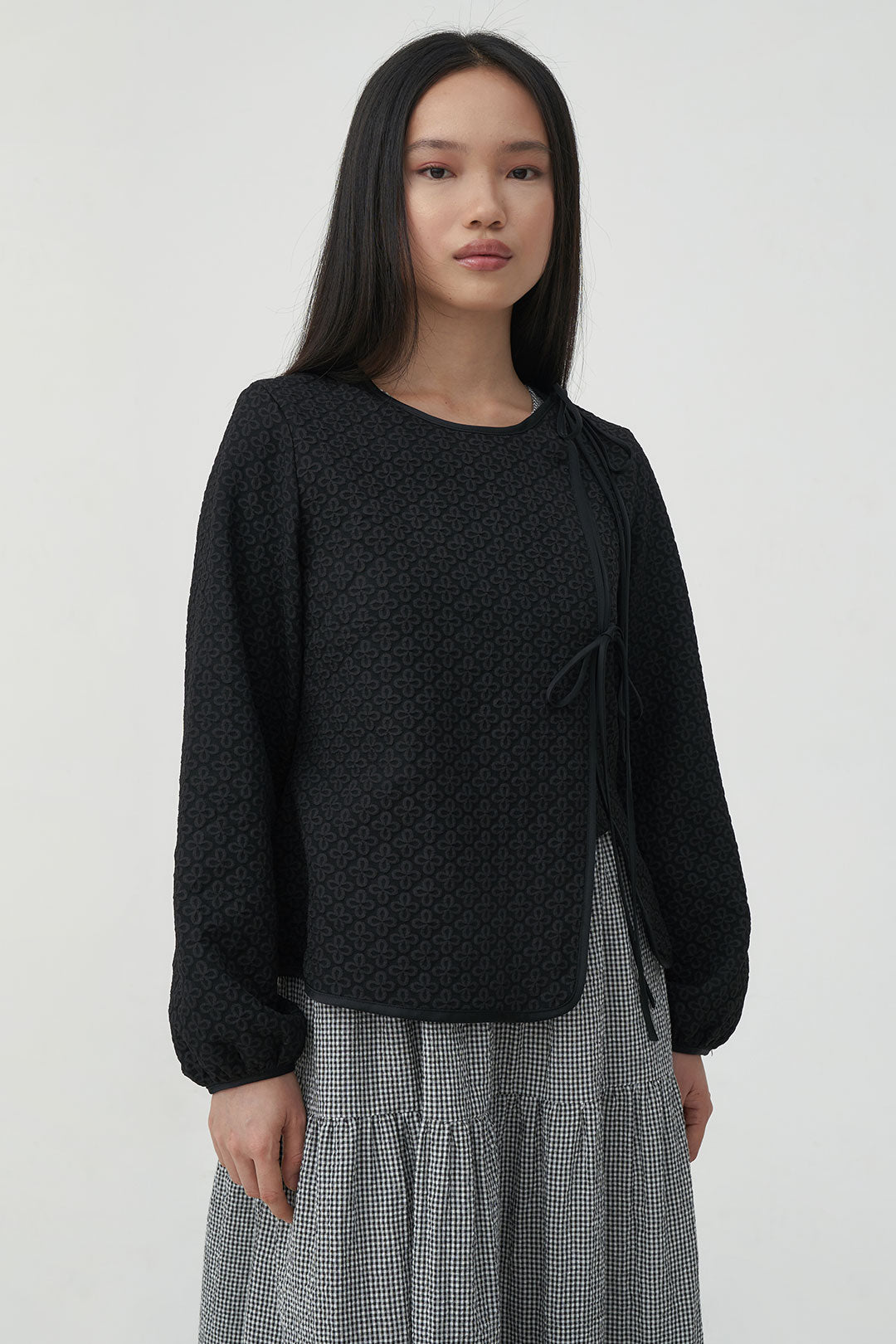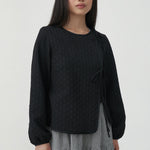- Straight fit with curved hems and slight balloon sleeves with light volume