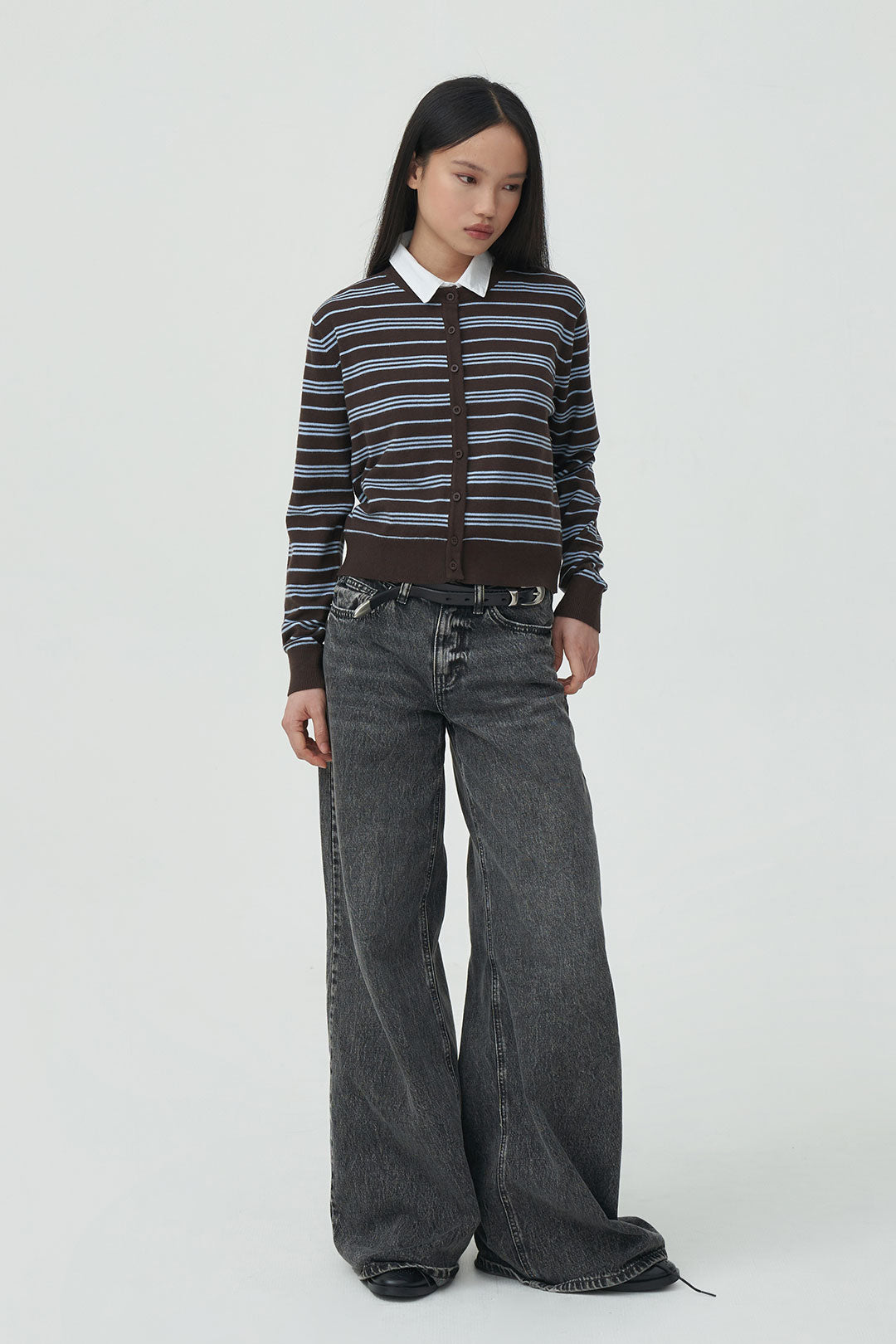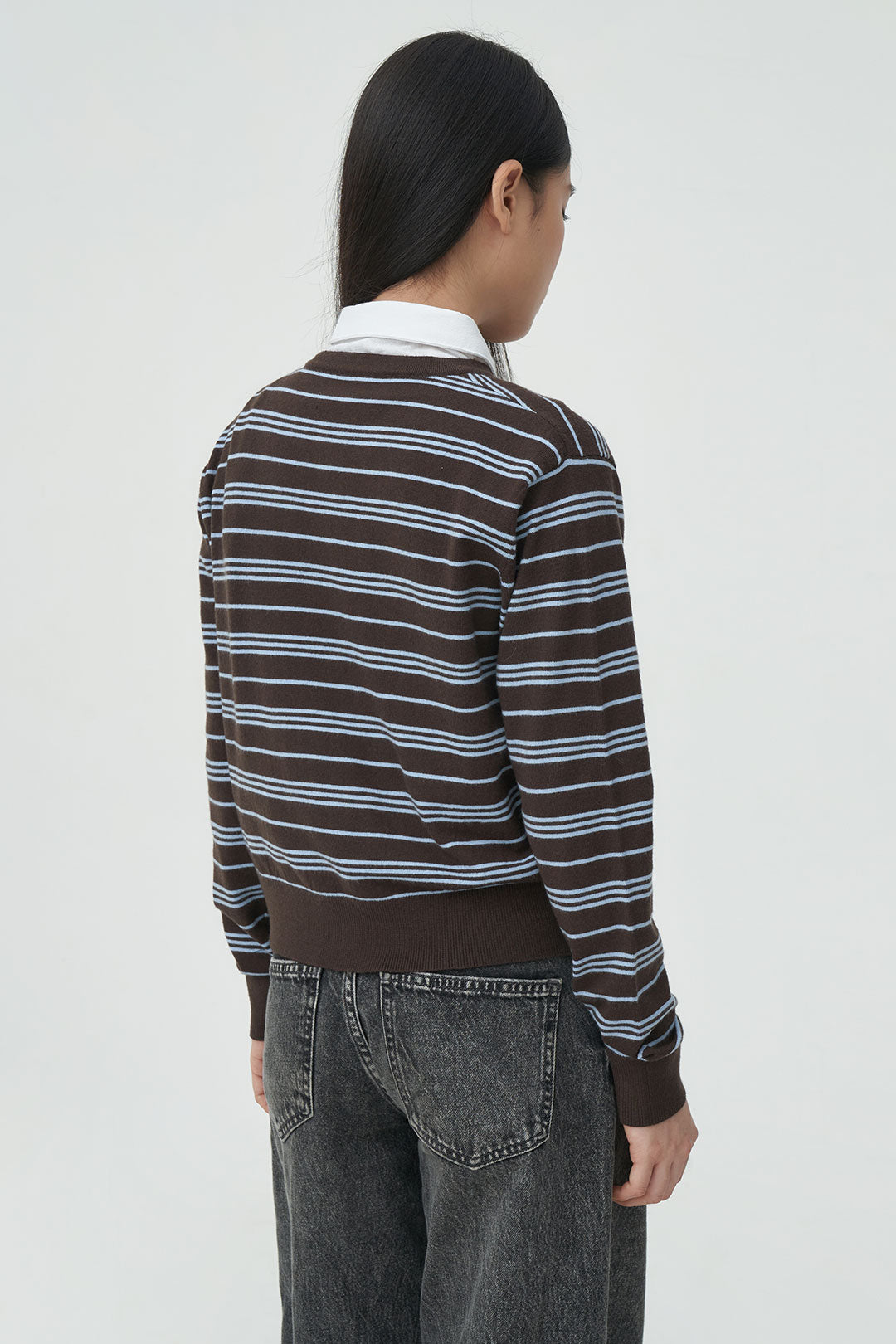 - Classic round neckline with button-down front and clean finish