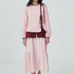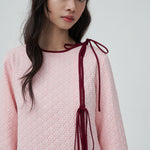 - Designed with contrast bias and twin side ties for an elevated wrap look