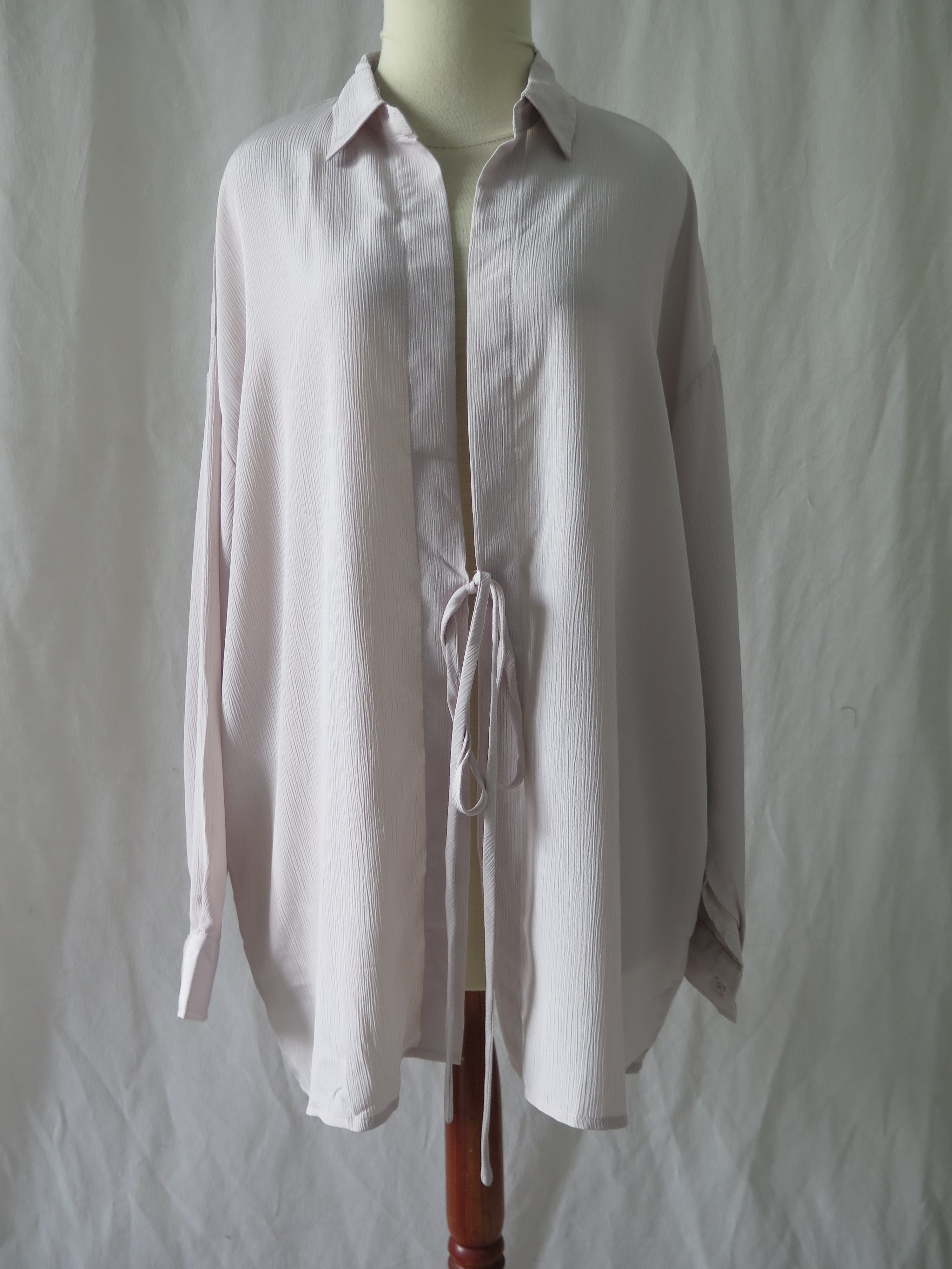 Shirt-like outerwear with self-tied detail.