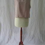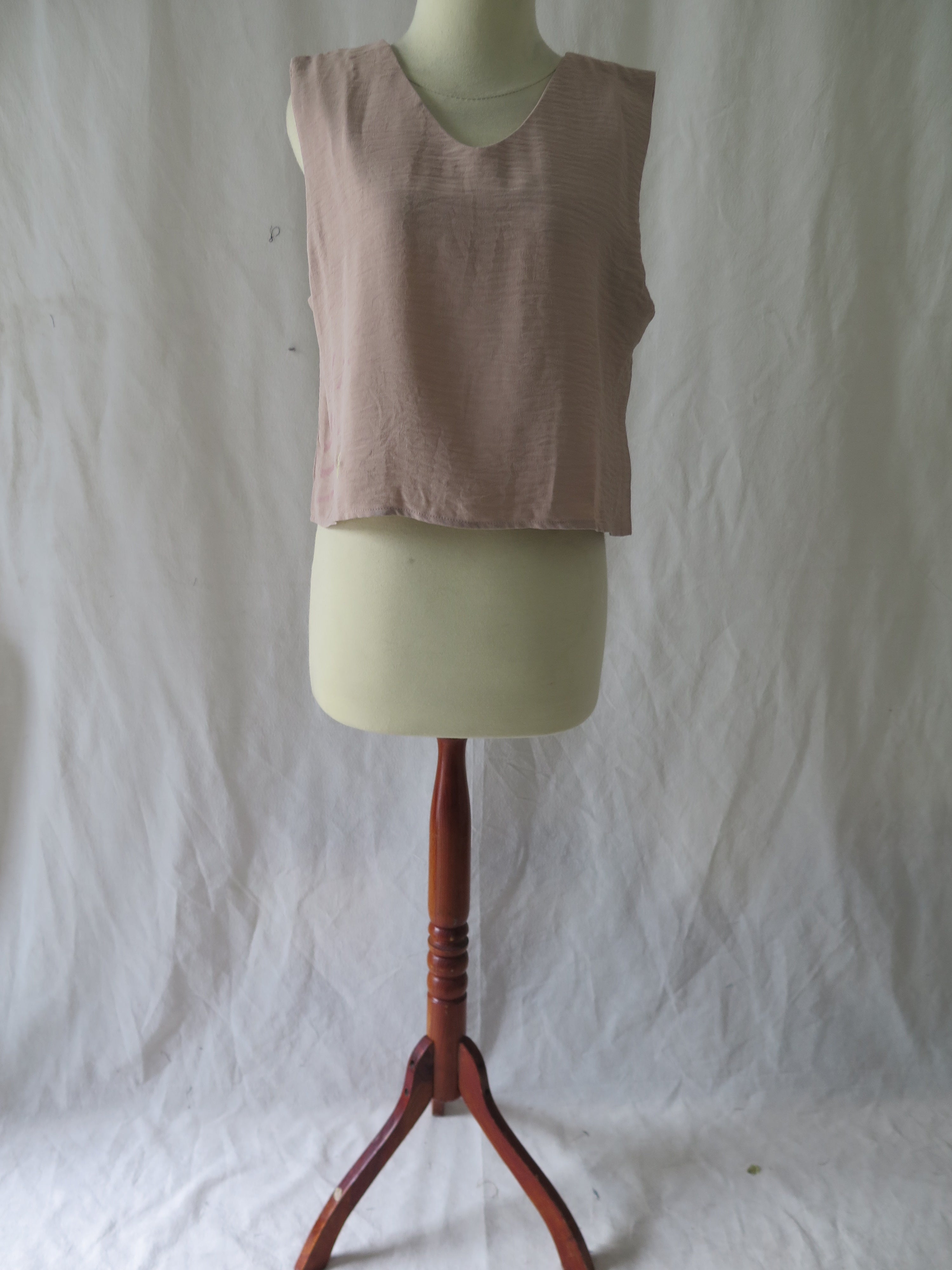 Reversible sleveless top with square neckline or V-neckline.