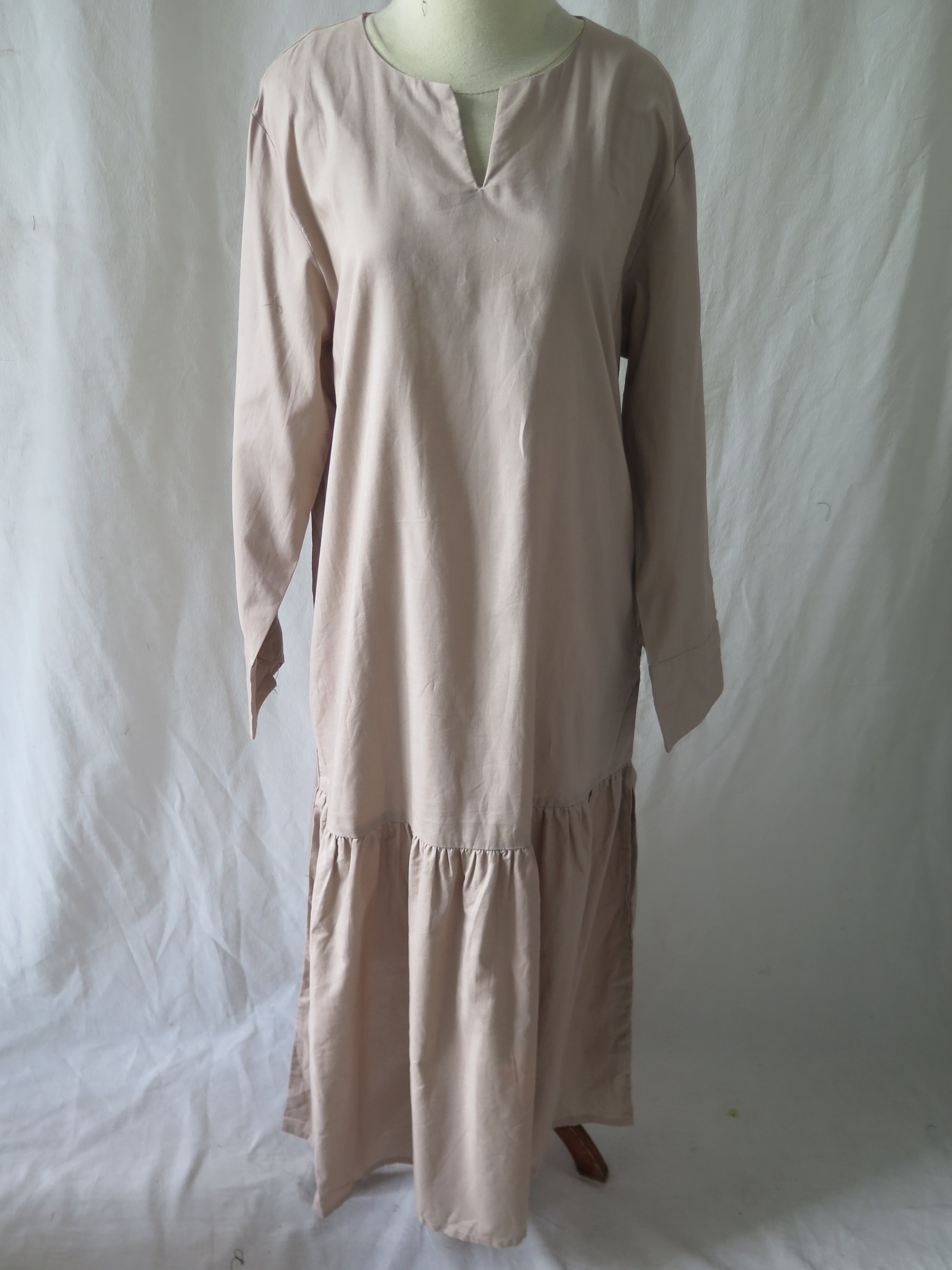 Long sleeved midi dress with ruffle.