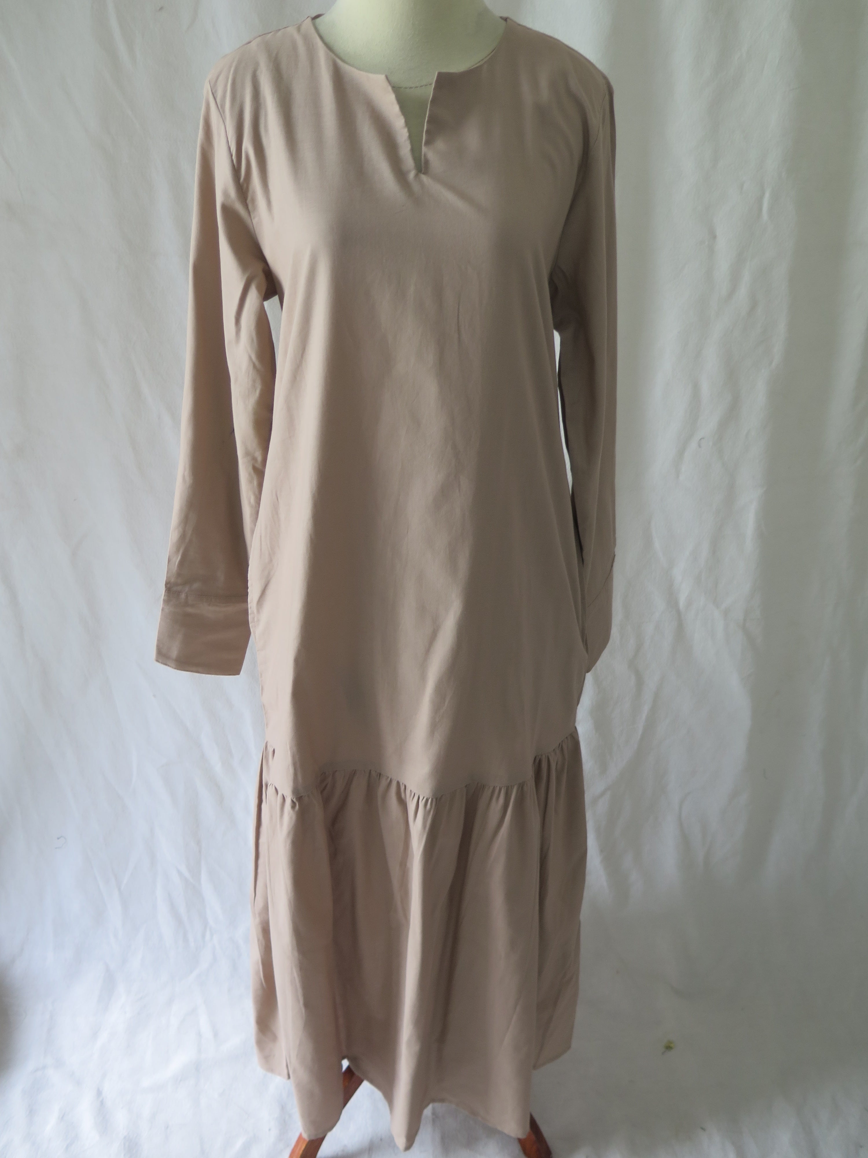Long sleeved midi dress with ruffle.