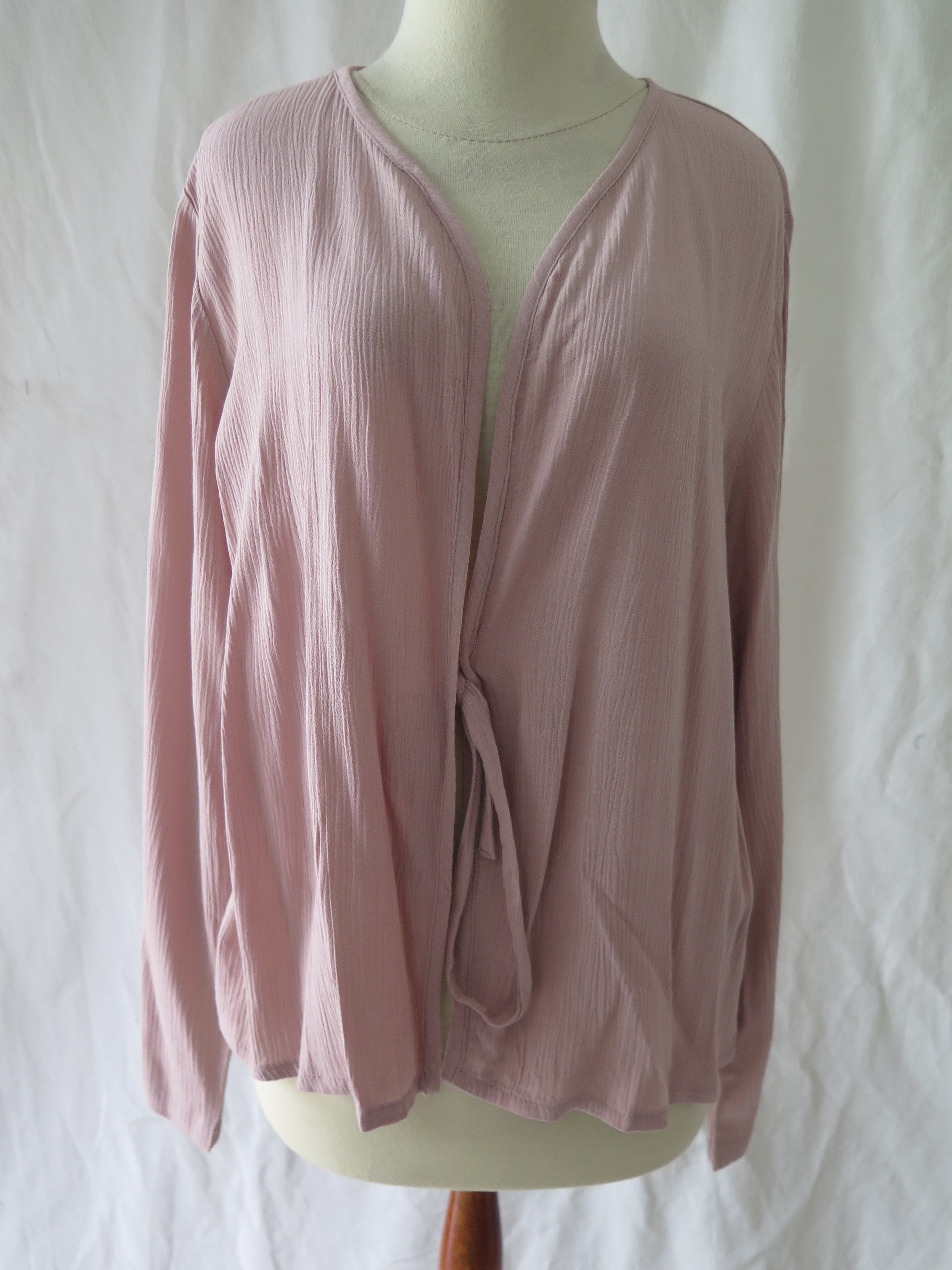 Self-tied cropped outerwear with breathable fabric