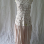 -Intricate floral lace bodice with a soft, flowing baloon skirt