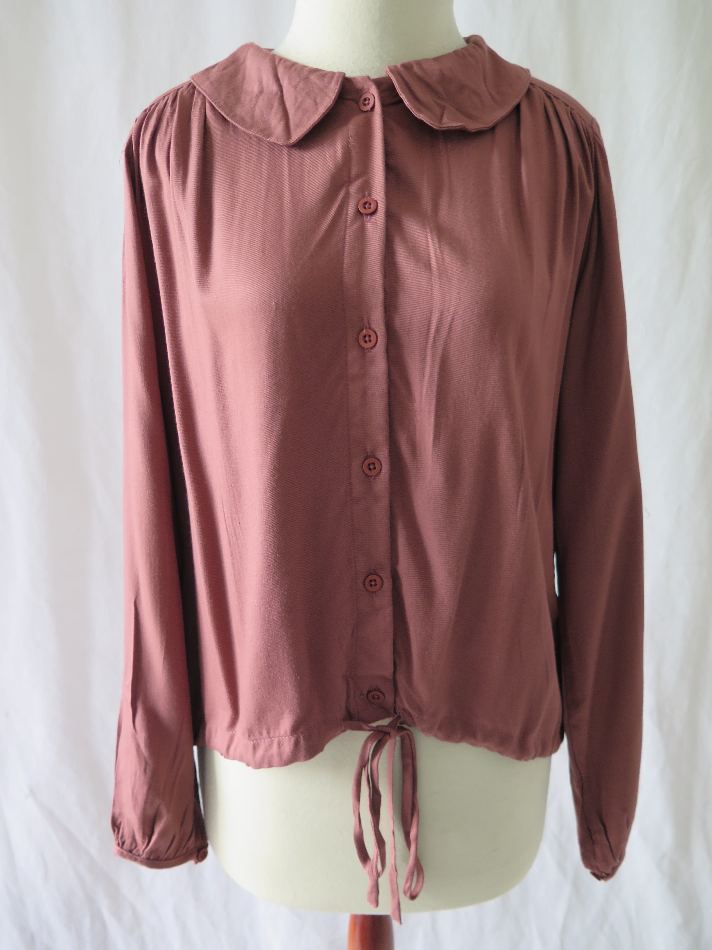 Longsleeves top with rounded collar and drawstring hemline