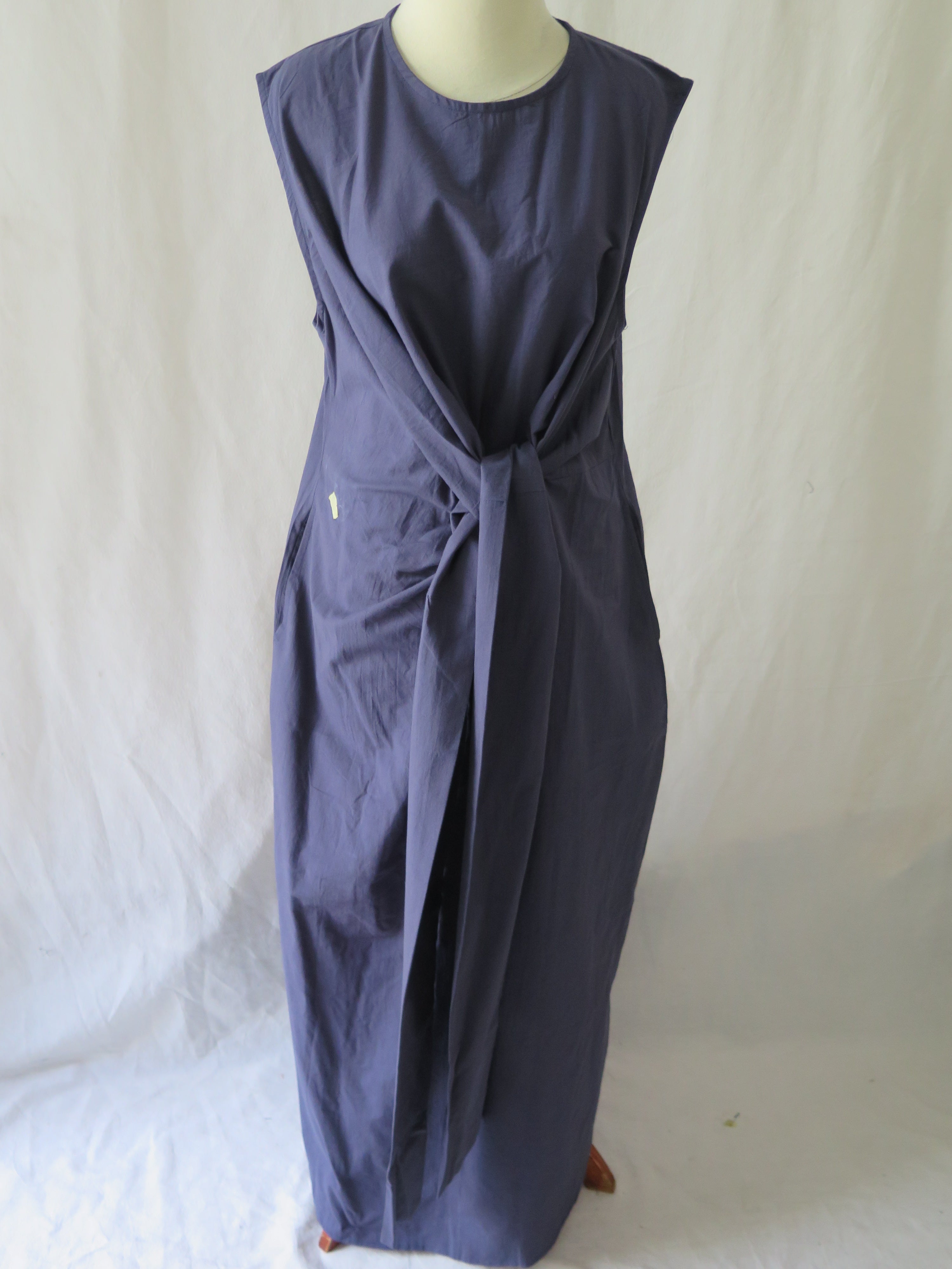 - Minimalist sleeveless dress with a structured yet fluid silhouette