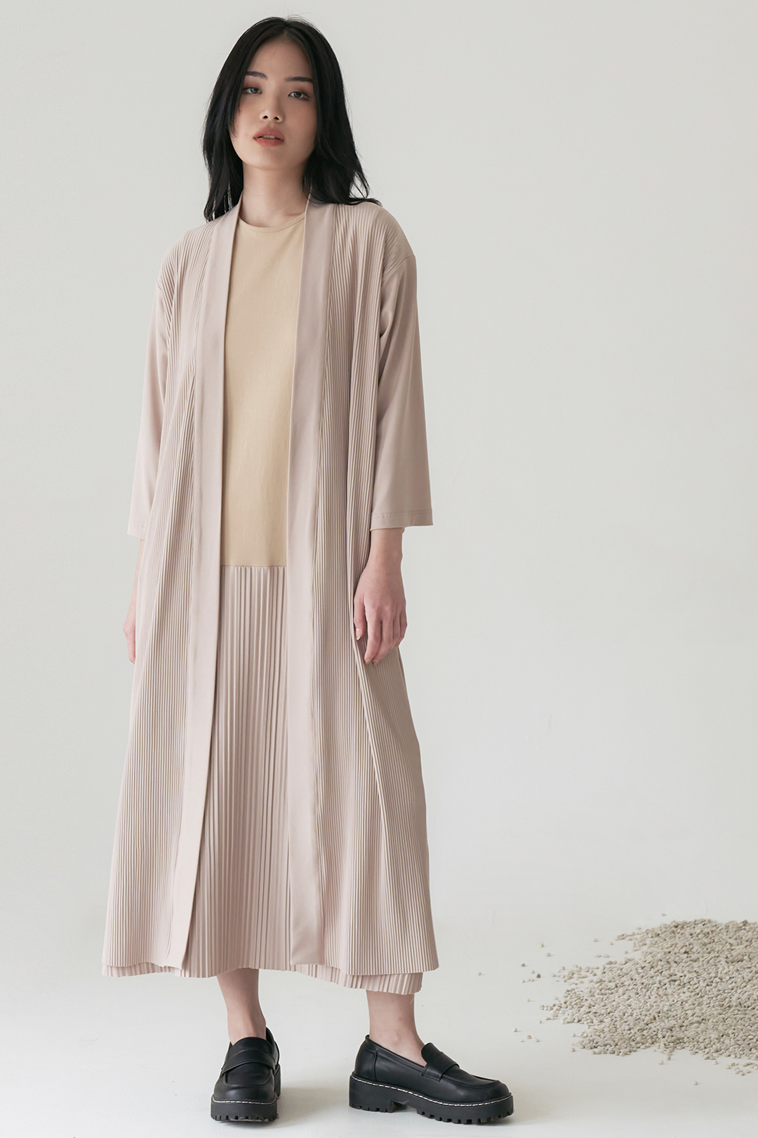 - Vertical line texture for an elongated silhouette.