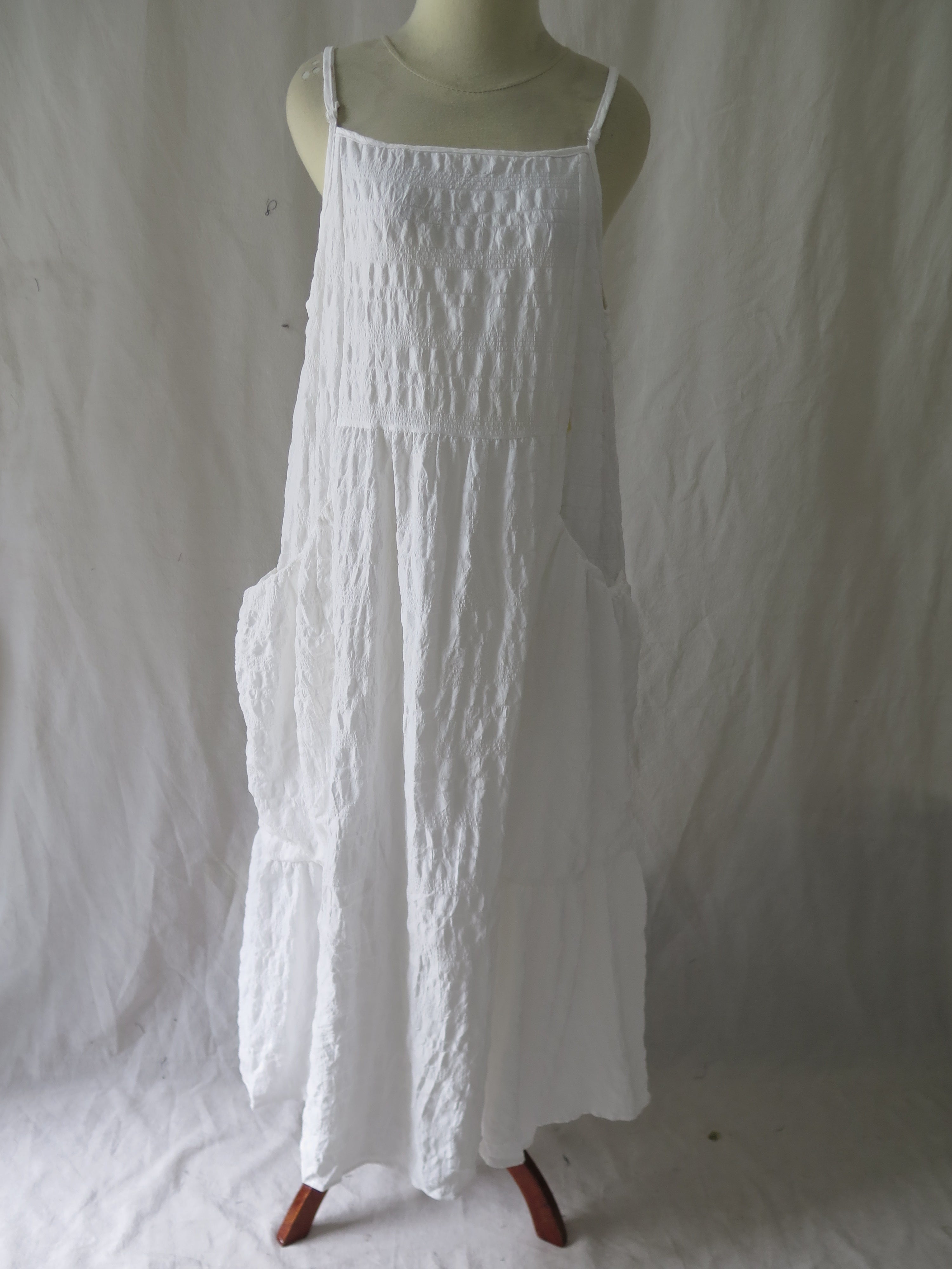 - Sleeveless with a tiered silhouette, creating a modern and timeless style.