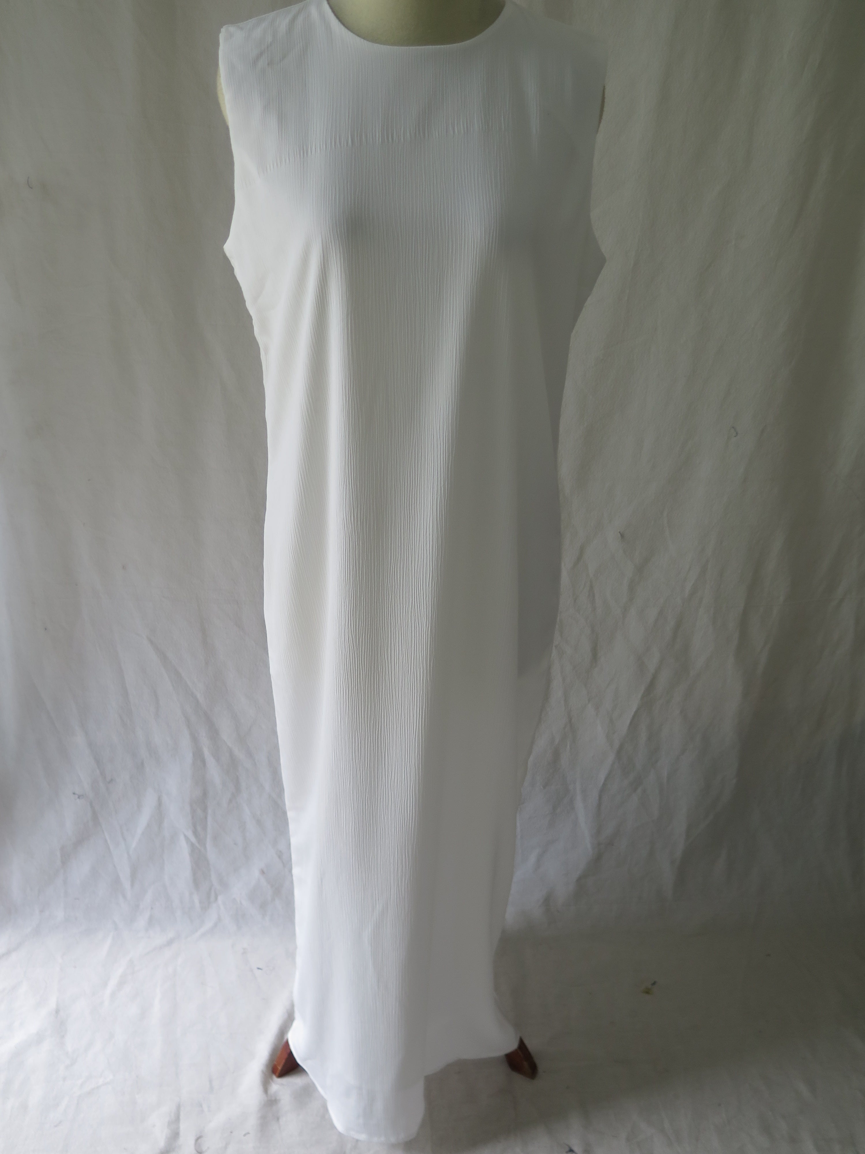 Sleeveless maxi dress with textured fabric, fully lined.