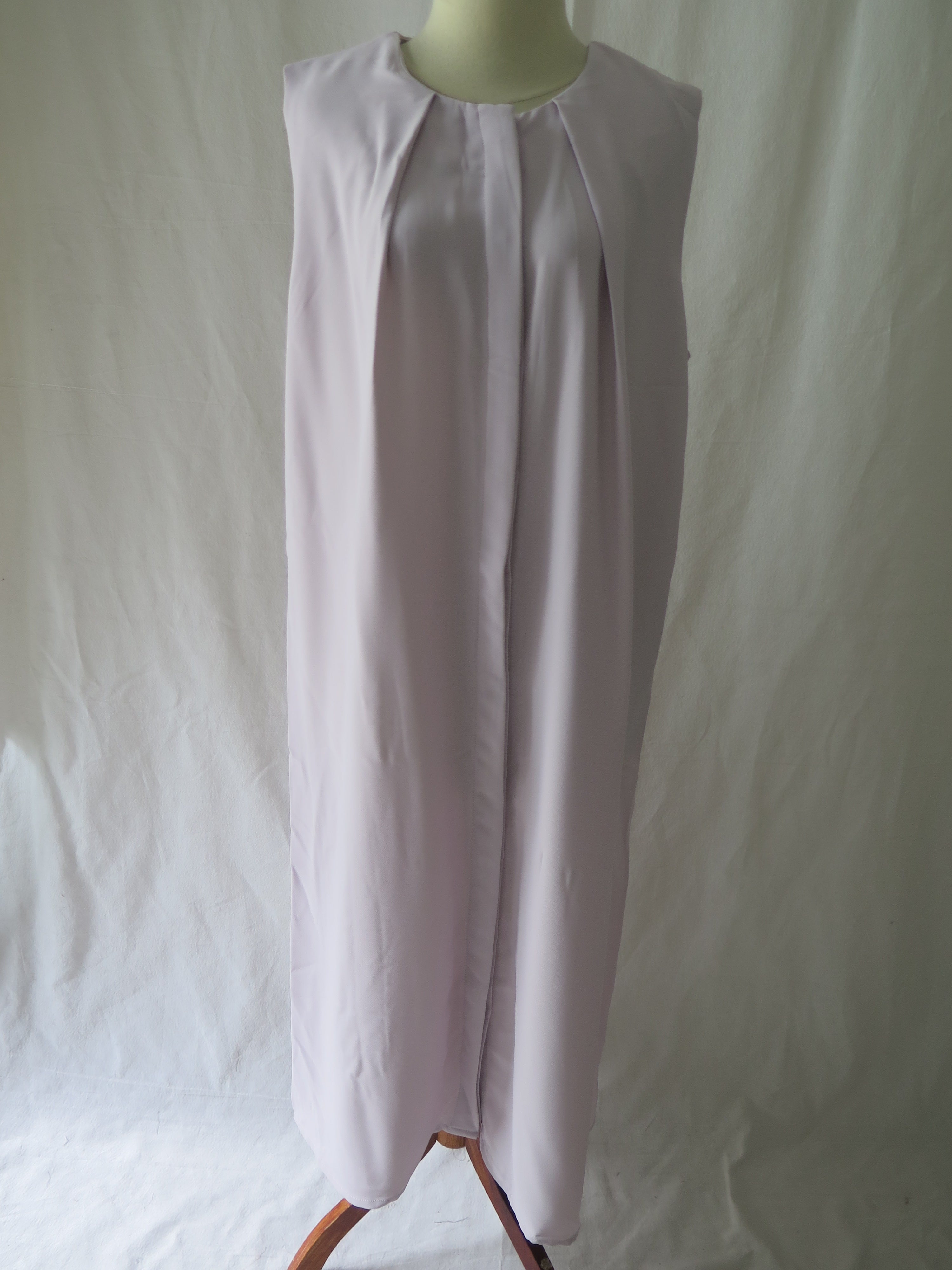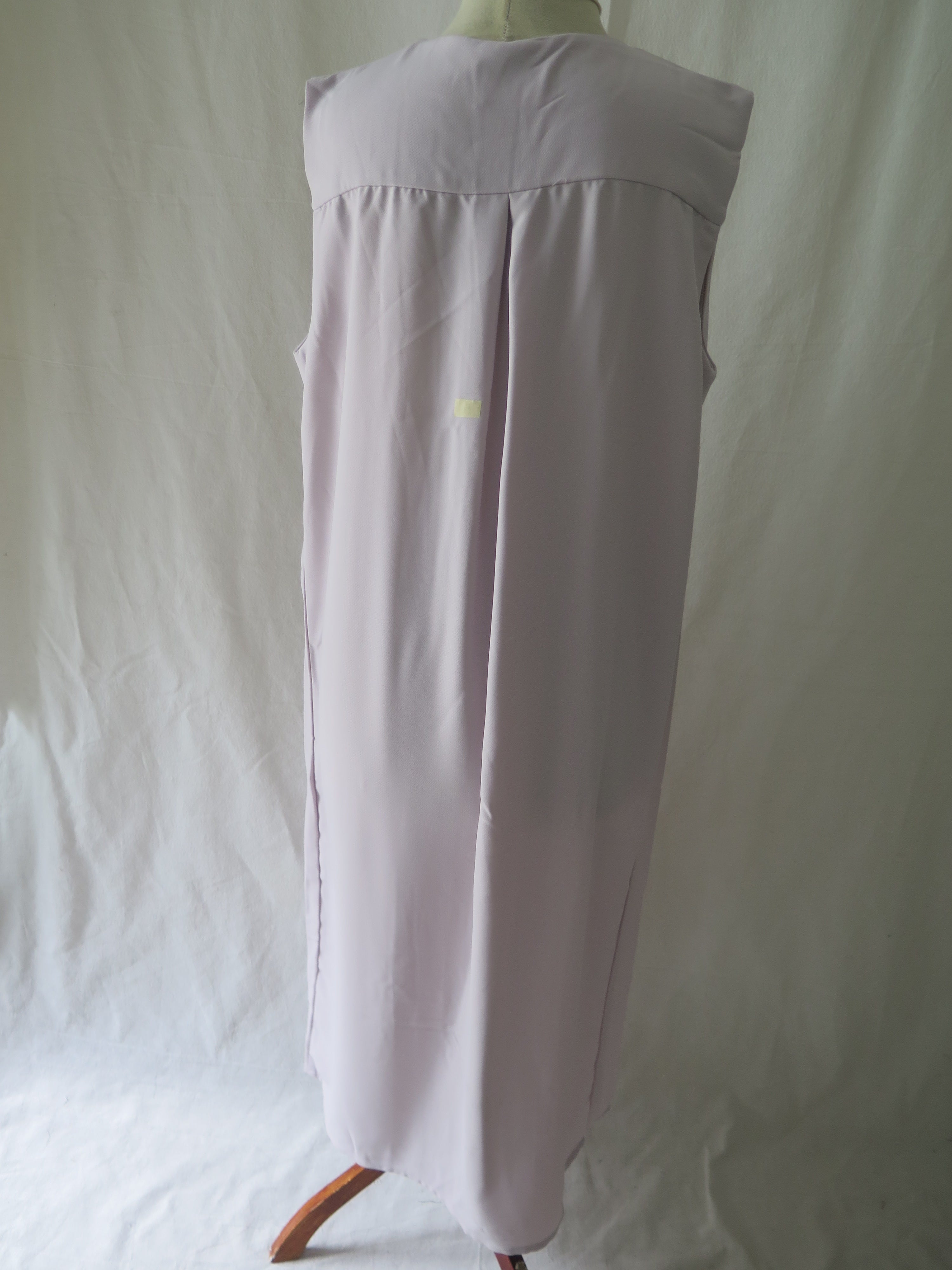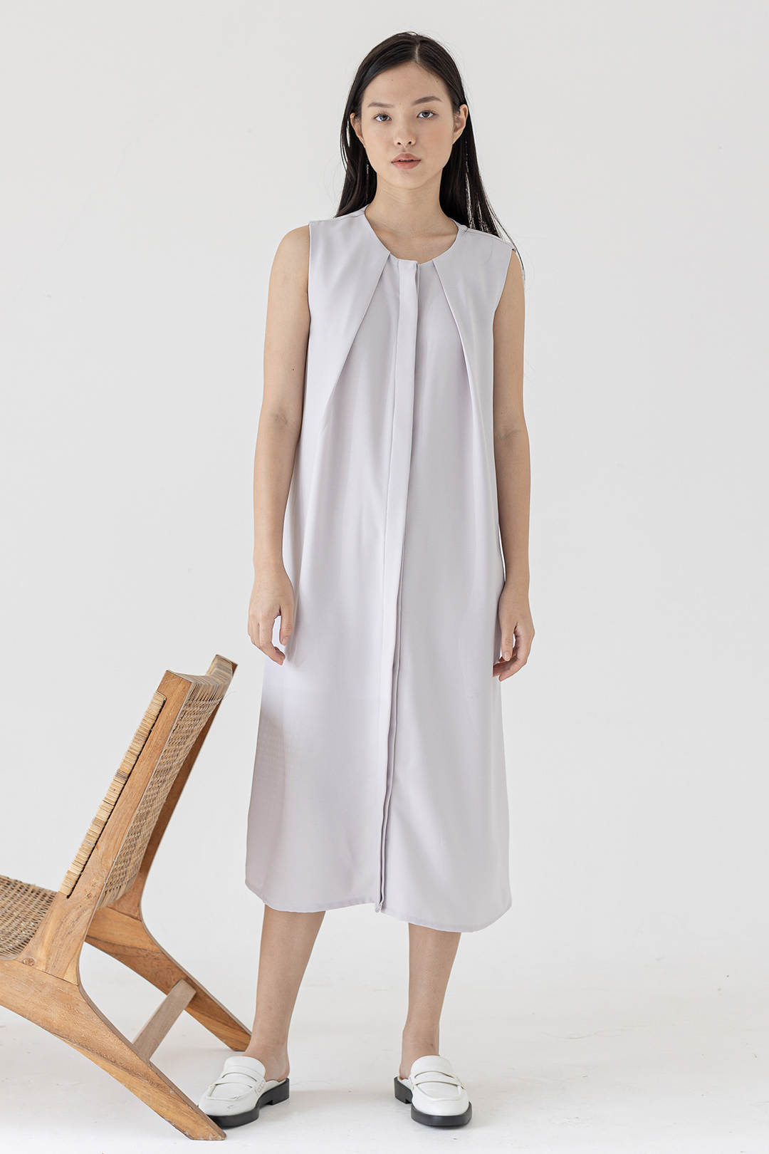 Easy sleeveless dress with front detail and hidden button opening.