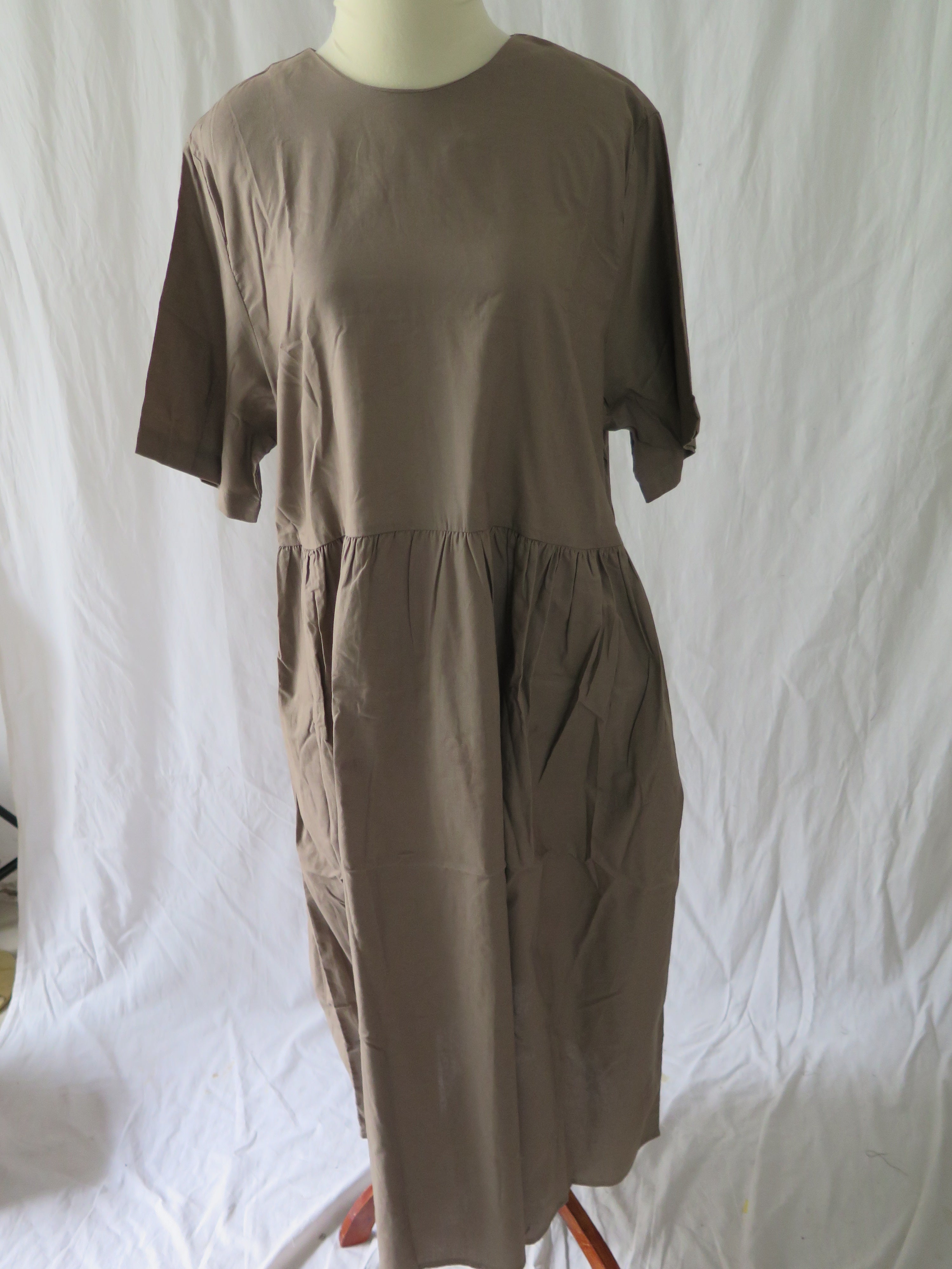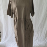 Short sleeved dress with round neckline.