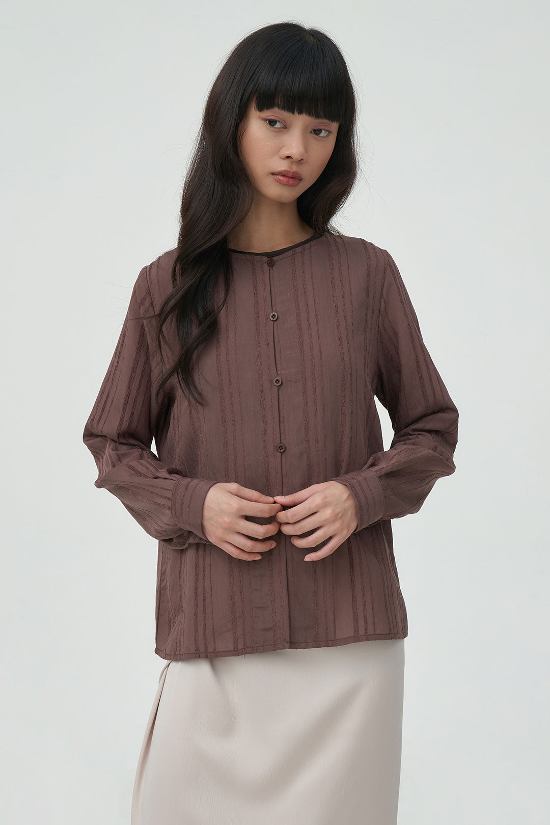 - A lightweight longsleeve blouse with a subtle textured finish for a soft, airy look