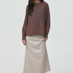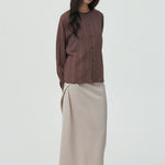 - Relaxed silhouette with gently voluminous sleeves and structured cuffs