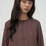 Material : Soft, cool touch, and semi-sheer fabric with subtle stripes texture