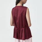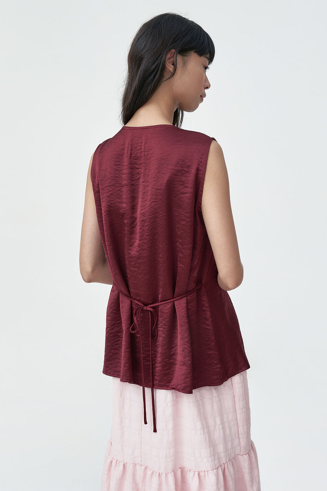 - Sleeveless top crafted from lightweight satin for an elegant, soft shine