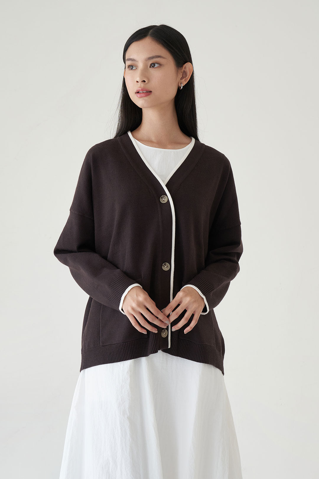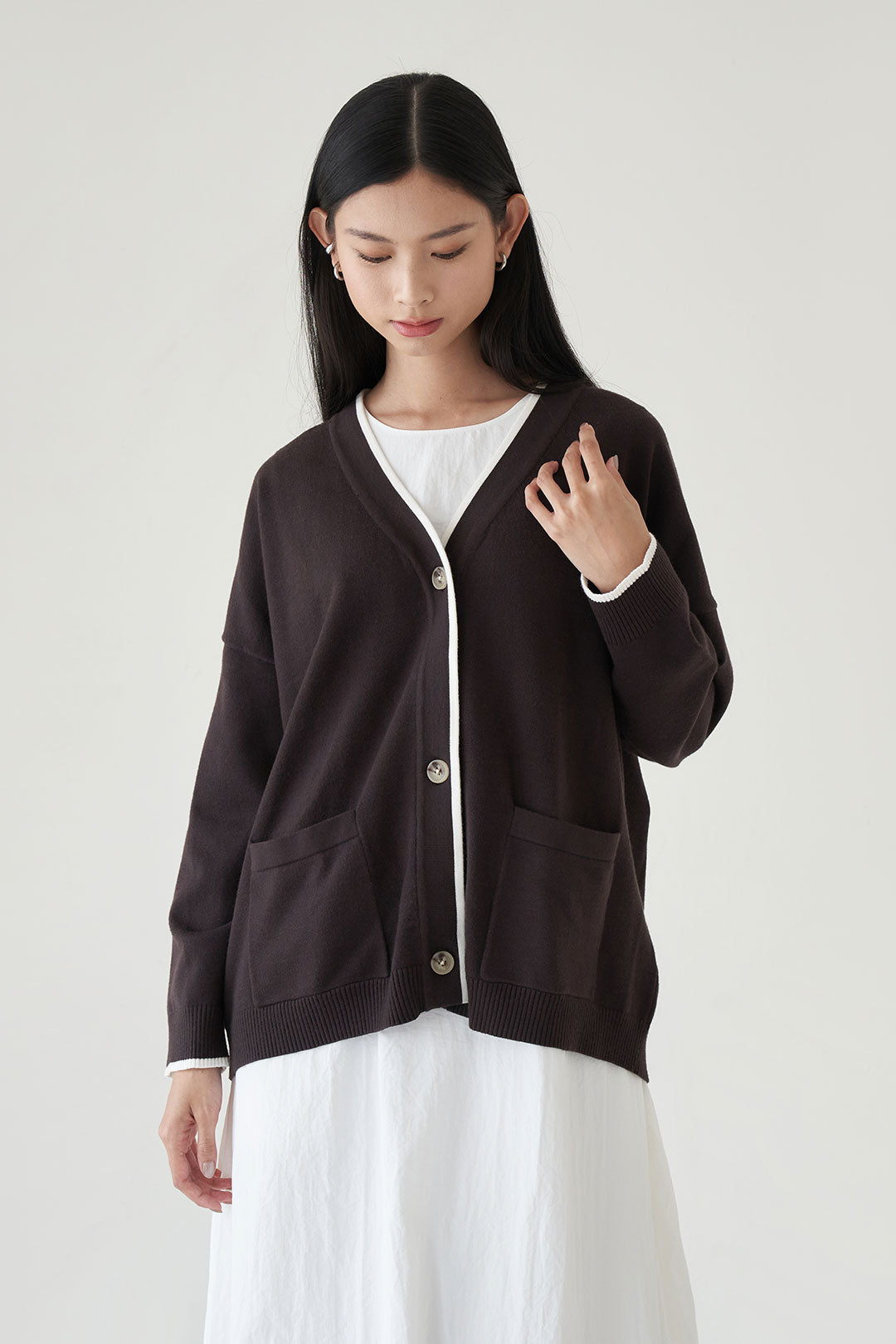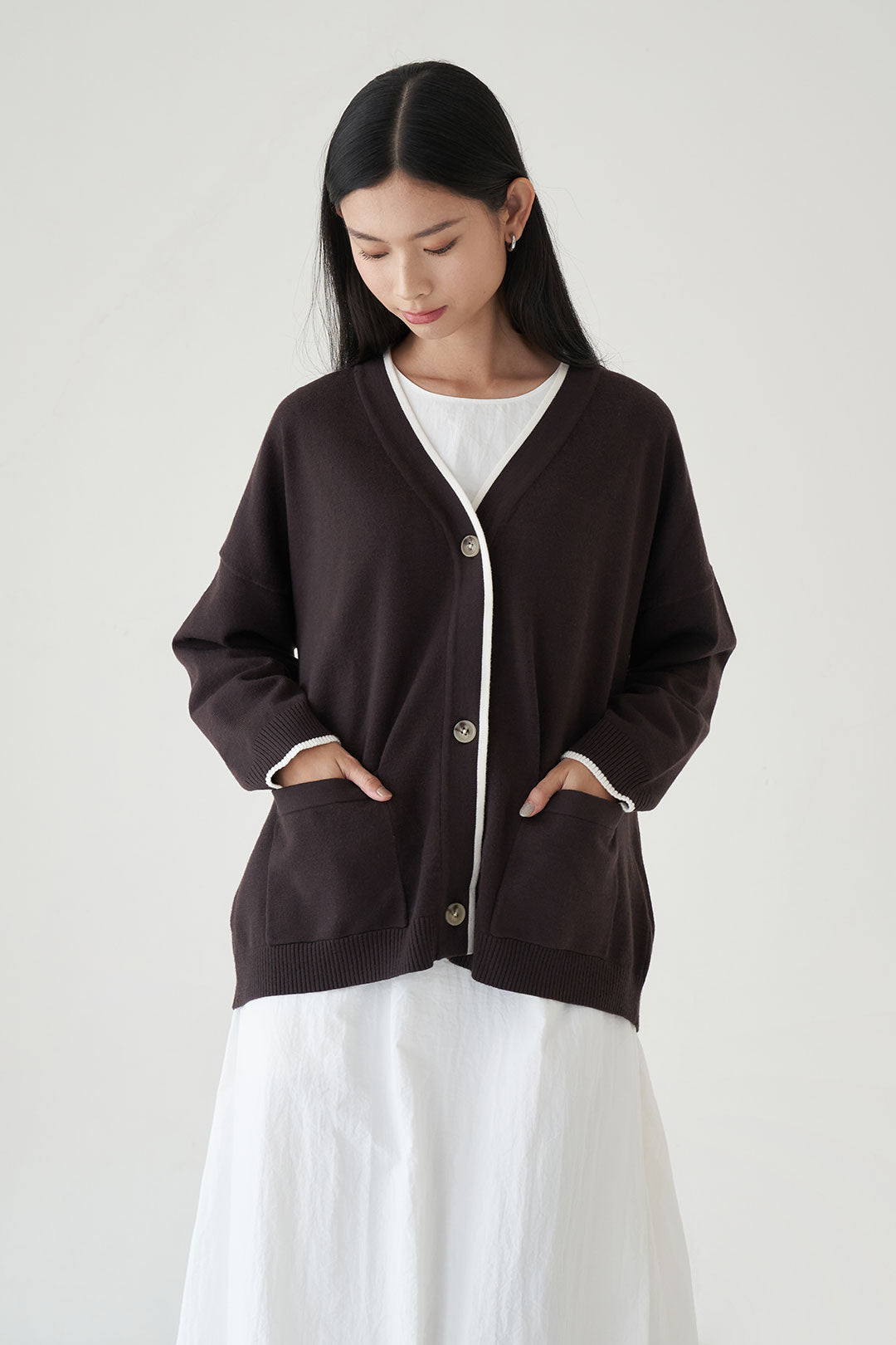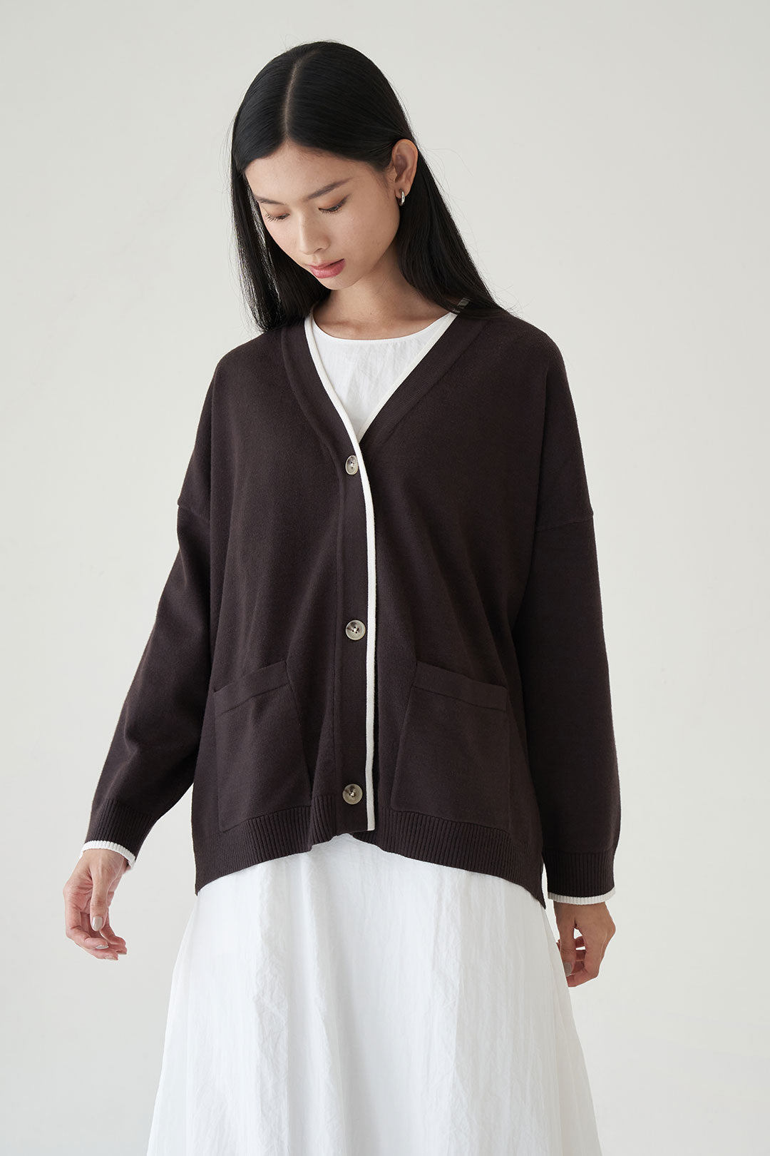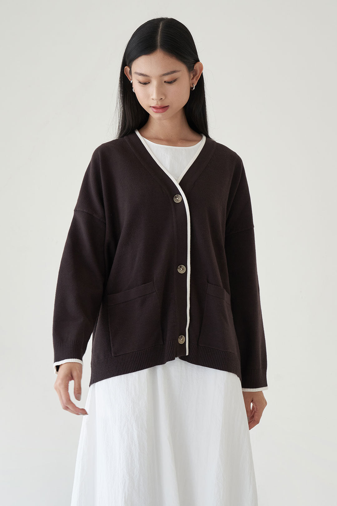 - Soft and cozy knit cardigan with a relaxed fit.