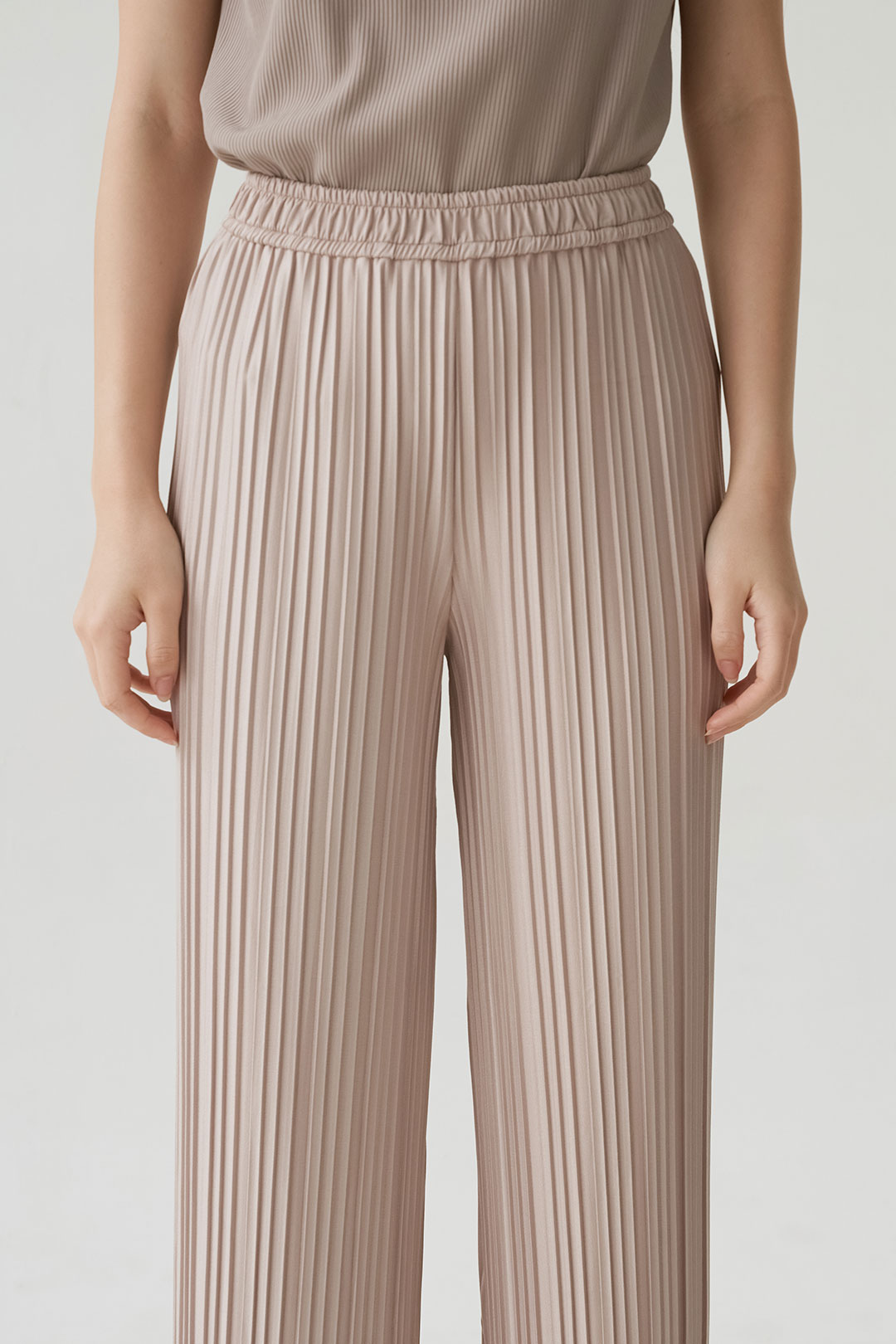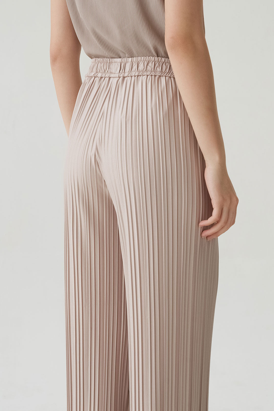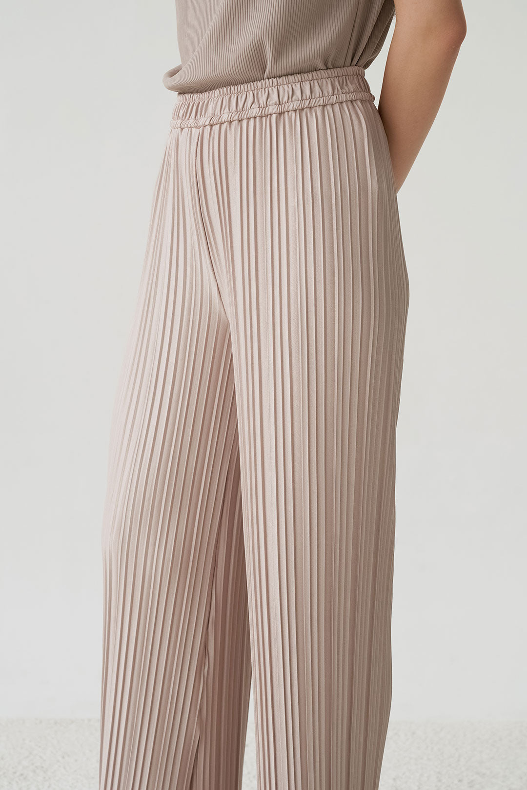 - Pants with pleated texture for a clean, structured look; no need to iron, always ready to wear