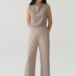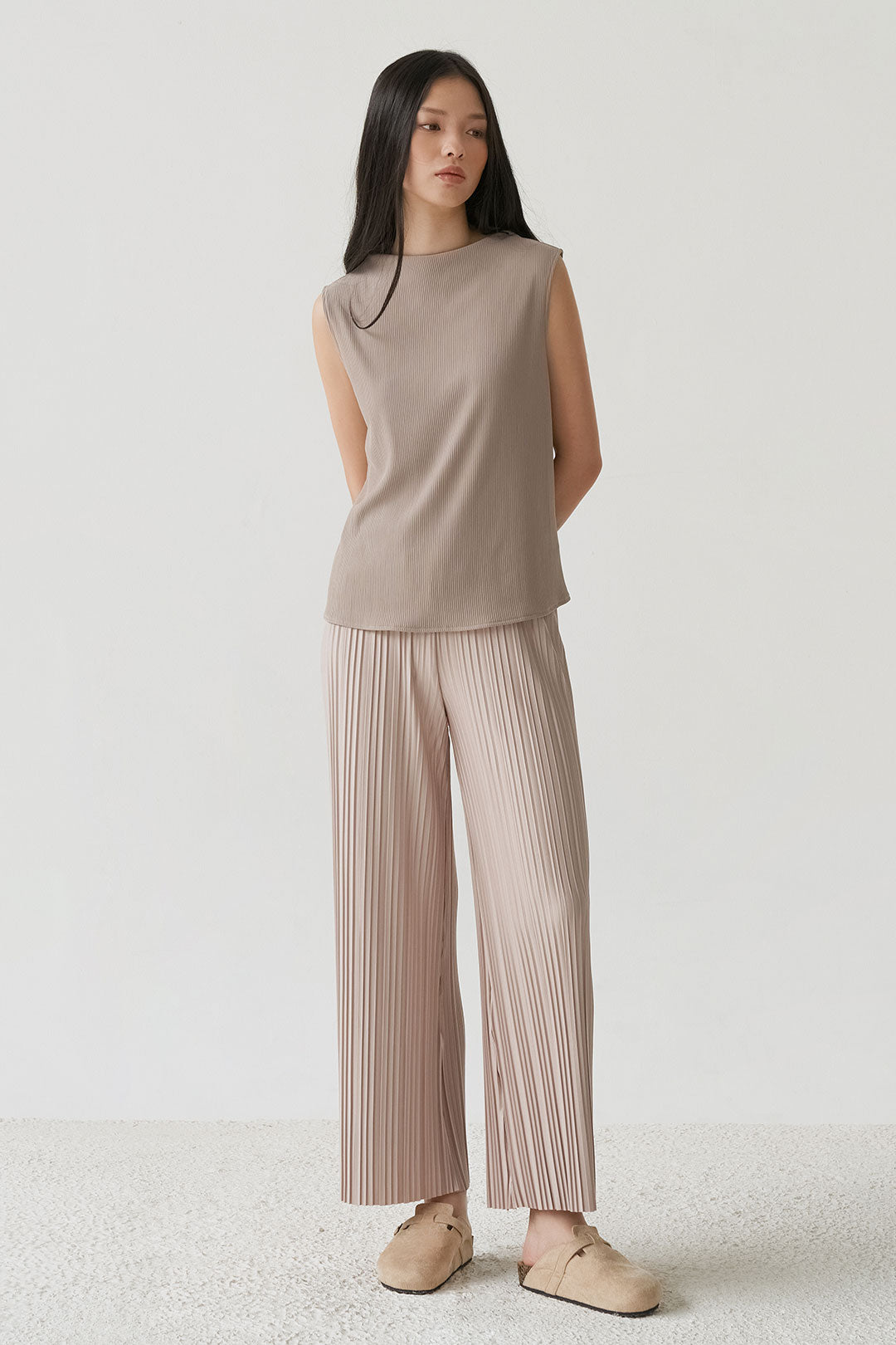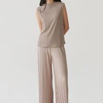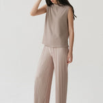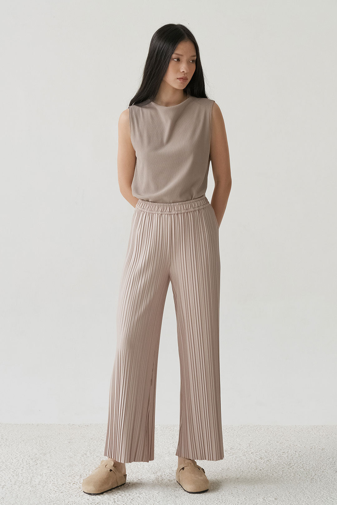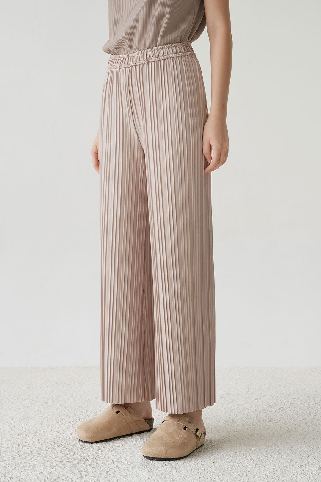 - Pants with pleated texture for a clean, structured look; no need to iron, always ready to wear