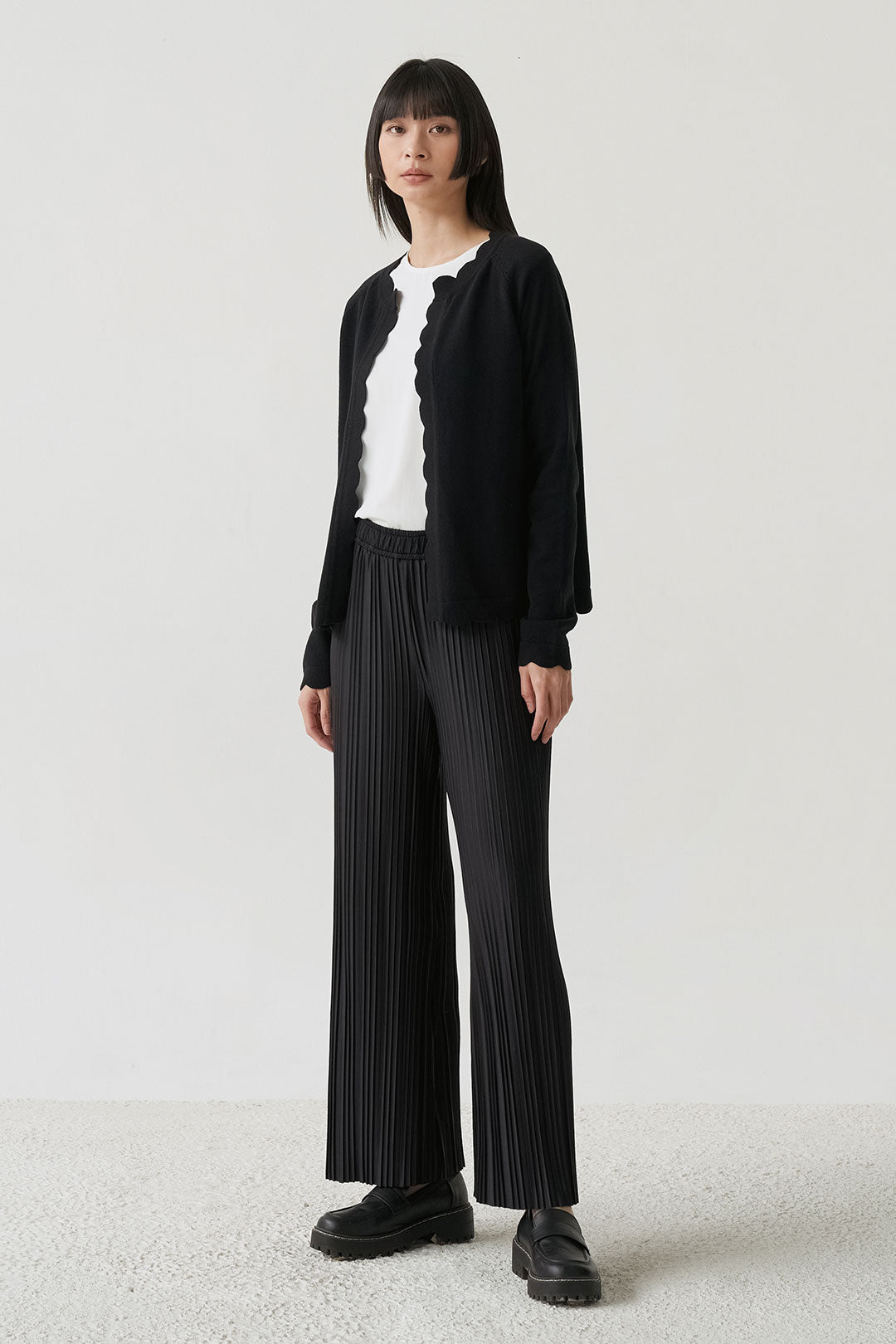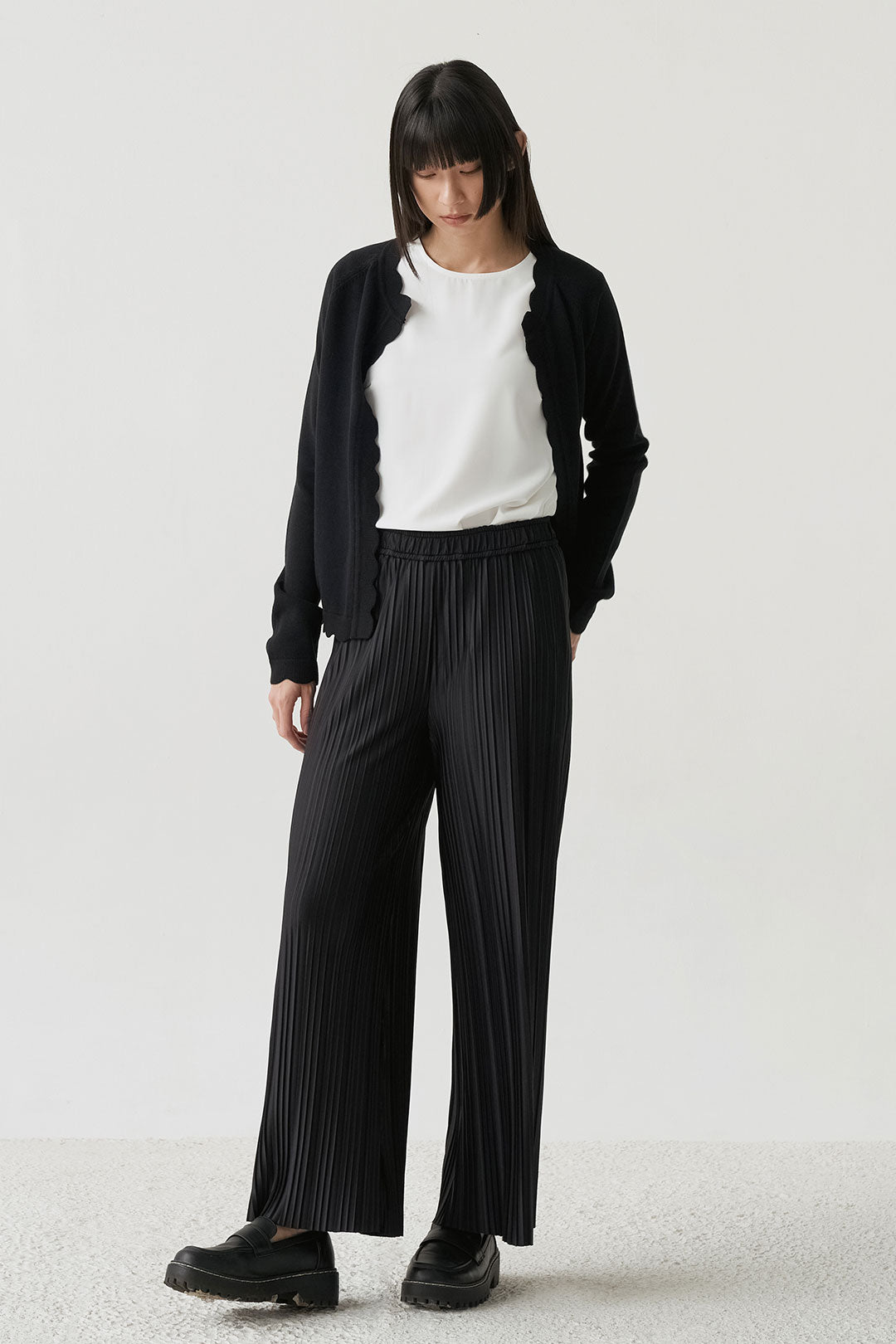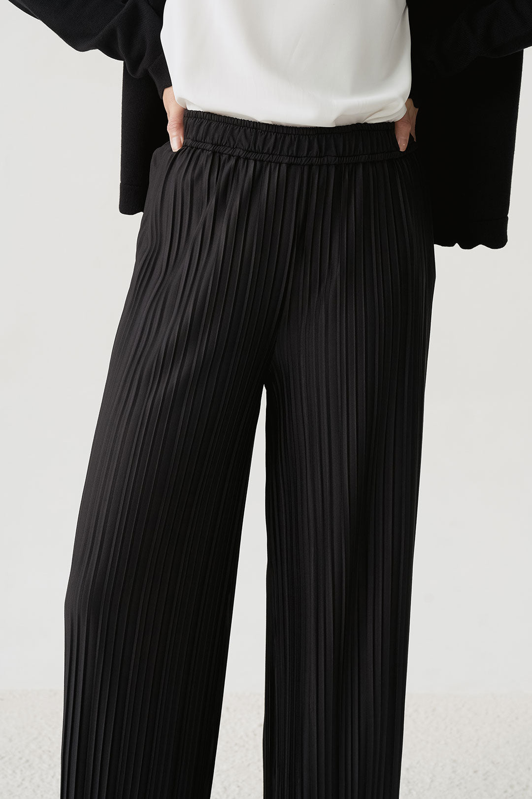 - Pants with pleated texture for a clean, structured look; no need to iron, always ready to wear