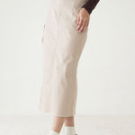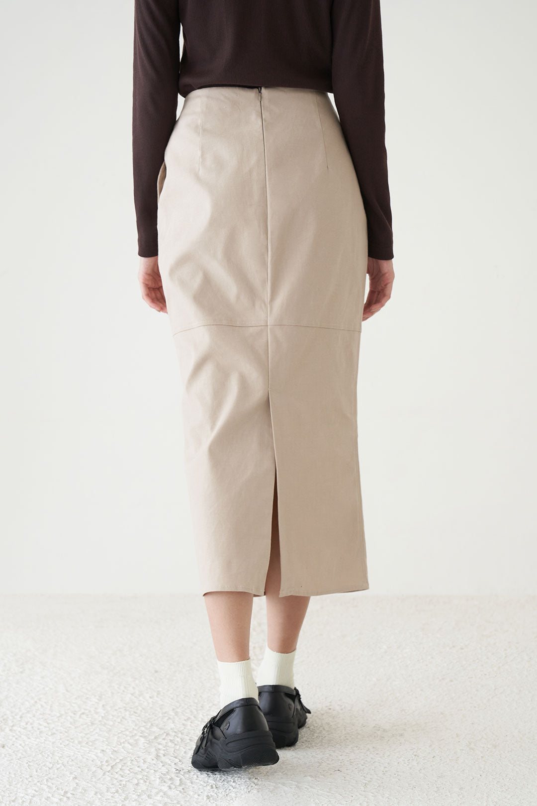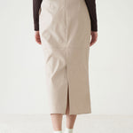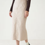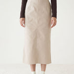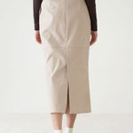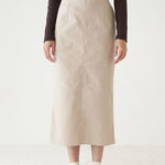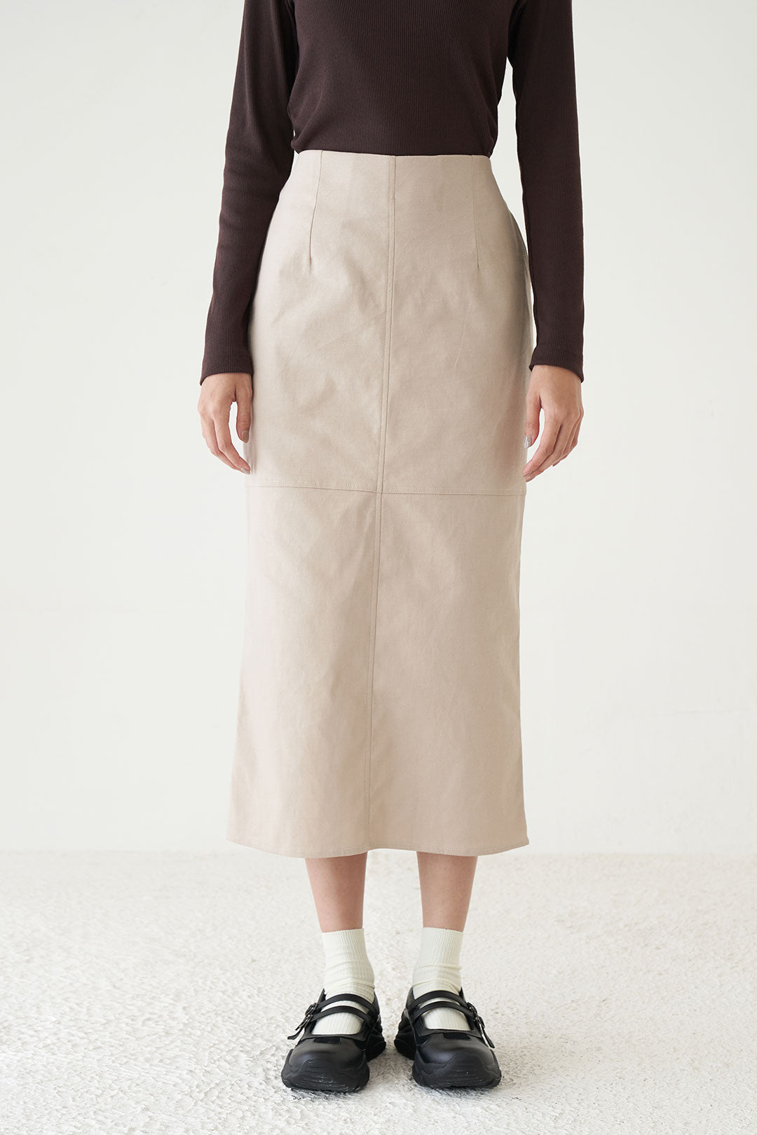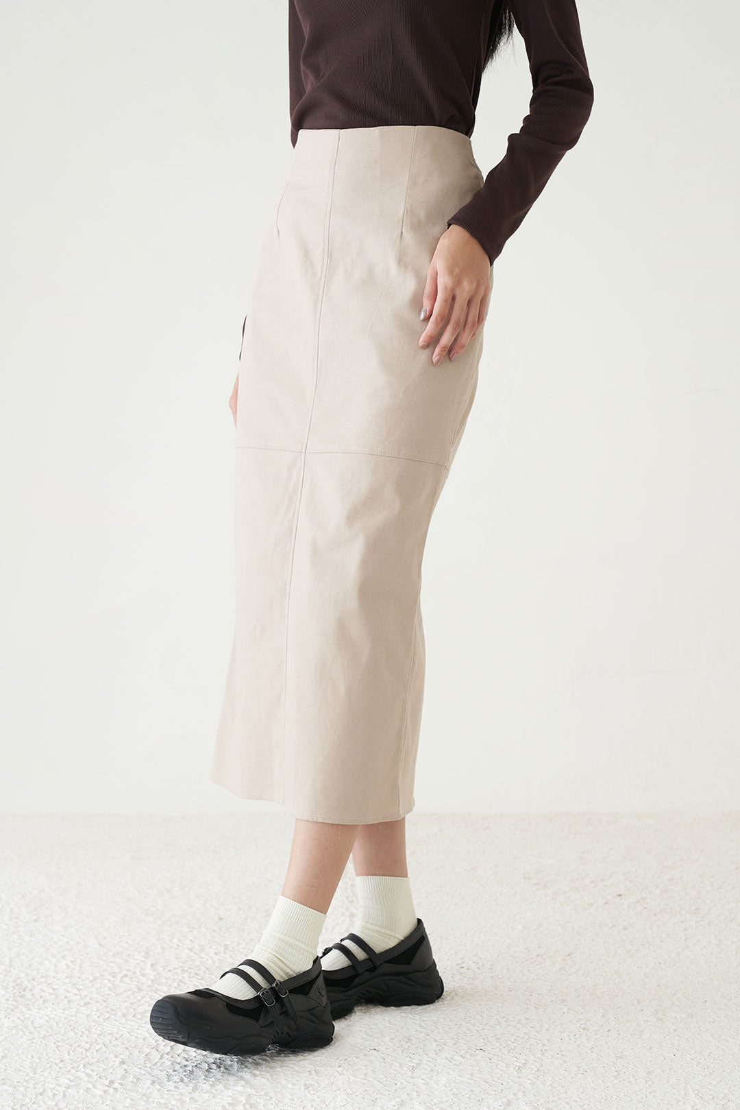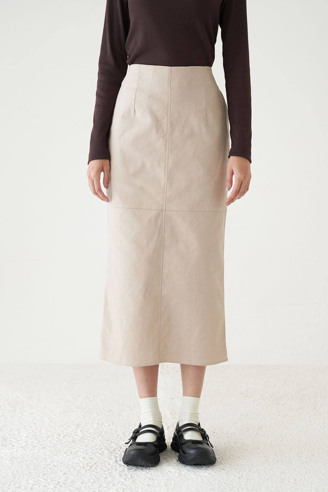 - High-waisted midi skirt with clean panel details and sleek silhouette