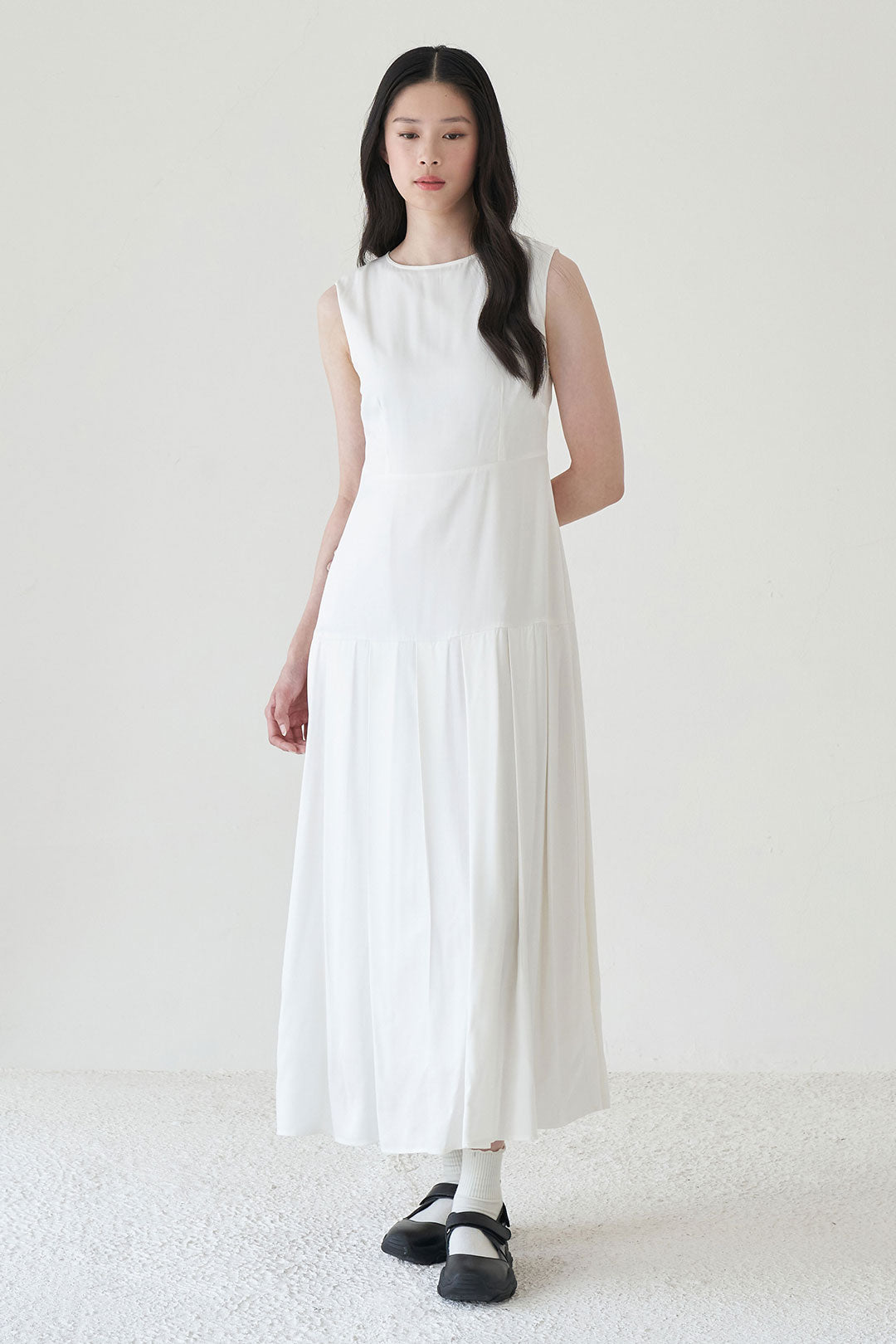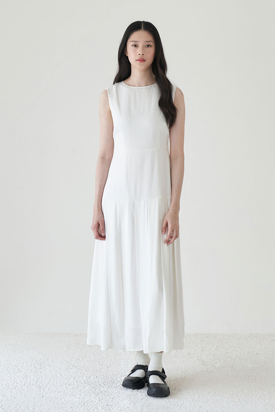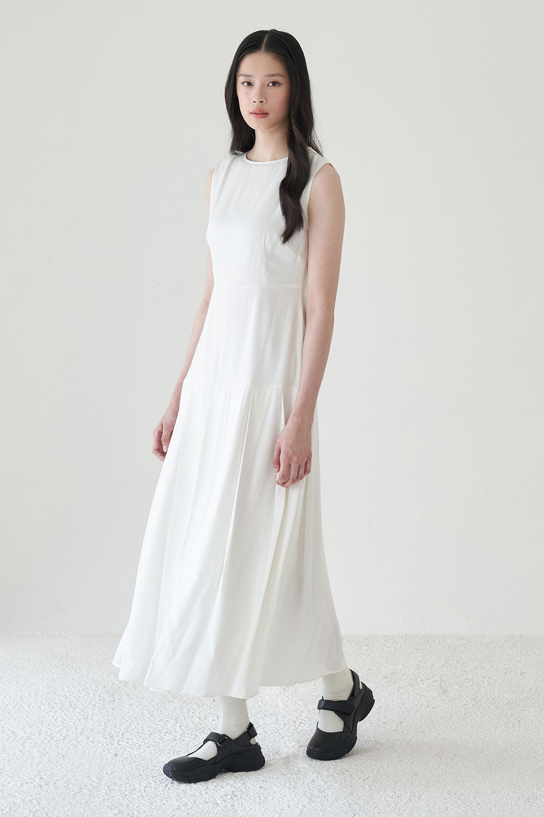 - Sleeveless dress with a subtle twist on a classic silhouette