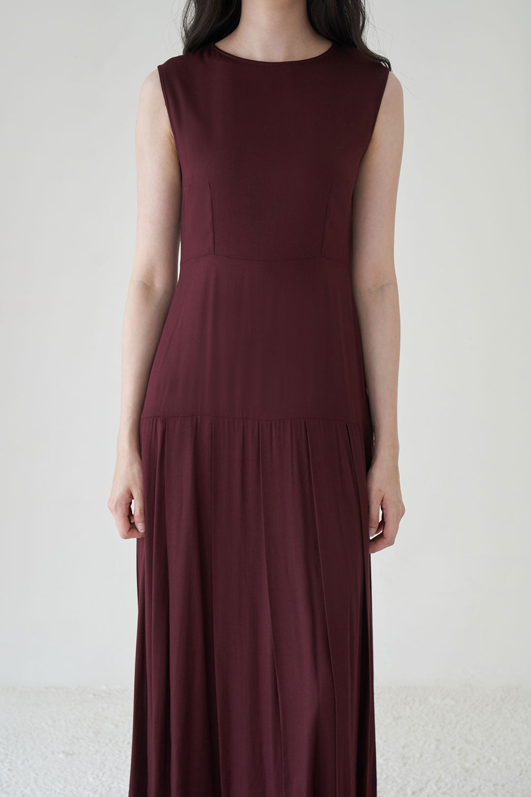 - Sleeveless dress with a subtle twist on a classic silhouette
