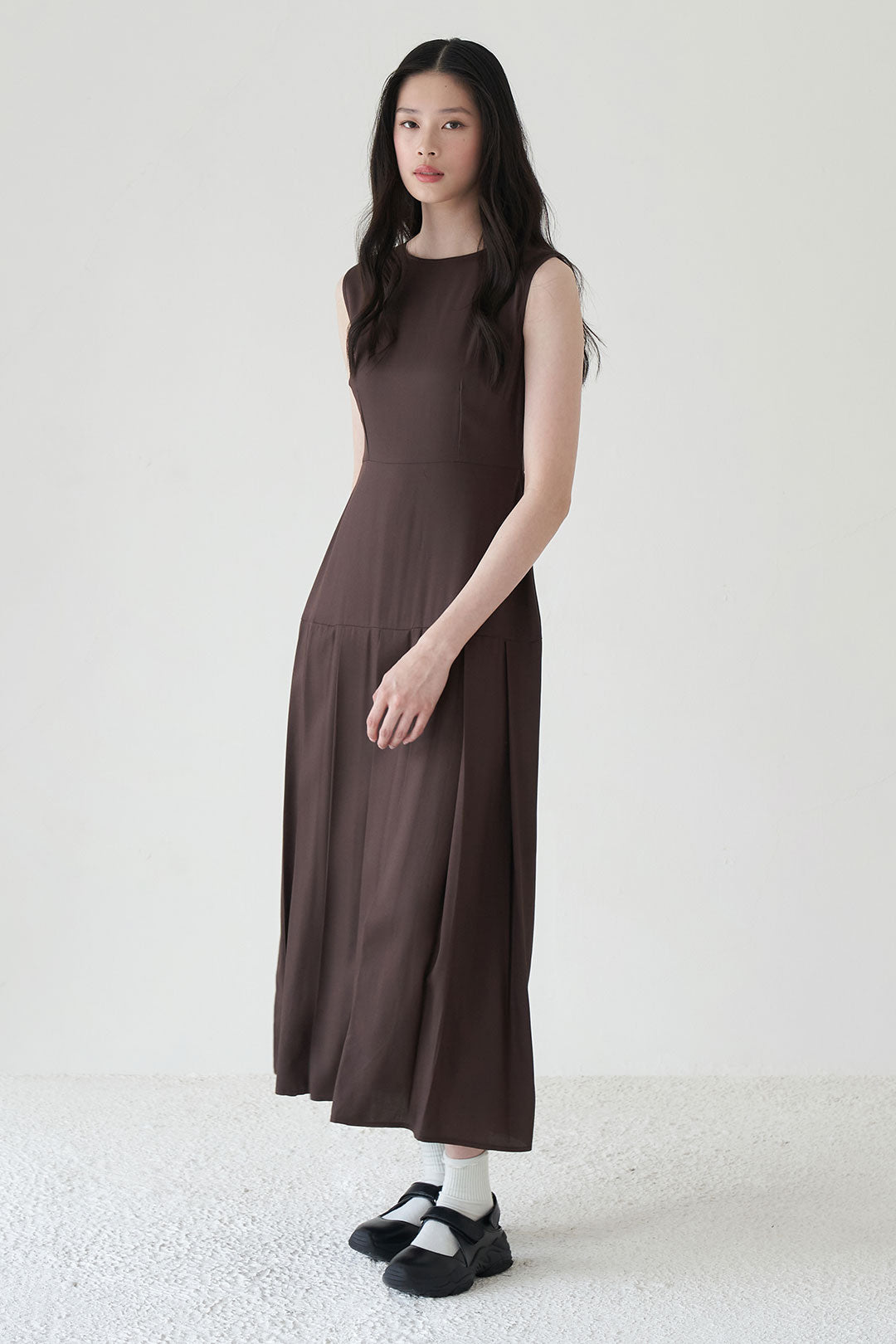 - Sleeveless dress with a subtle twist on a classic silhouette