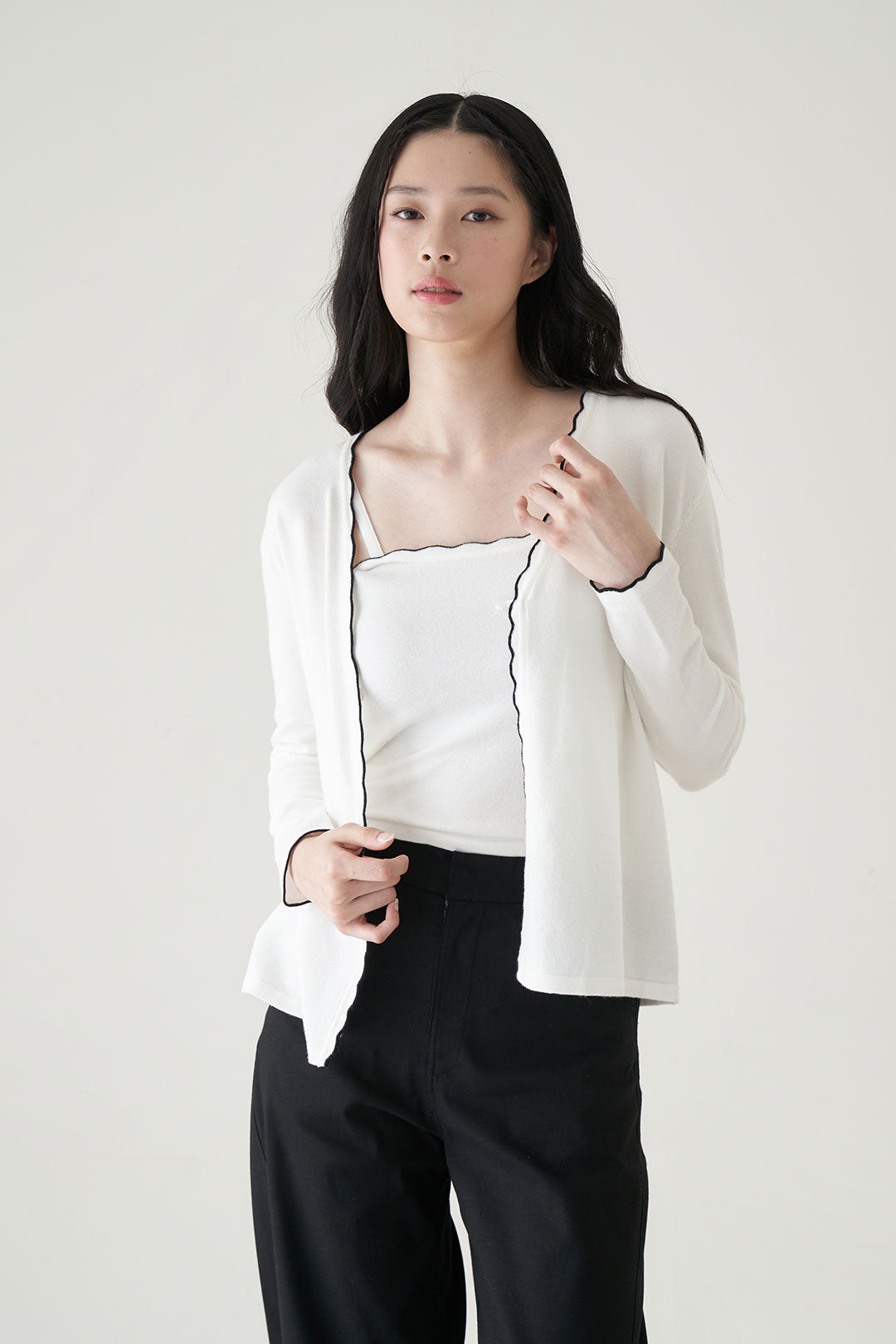 - Fitted camisole for a sleek base; relaxed outer for easy layering