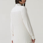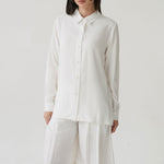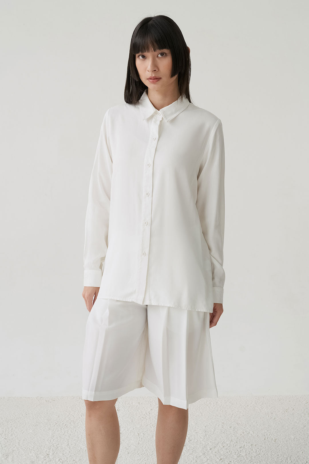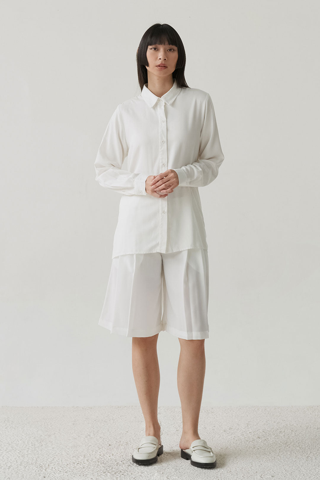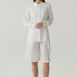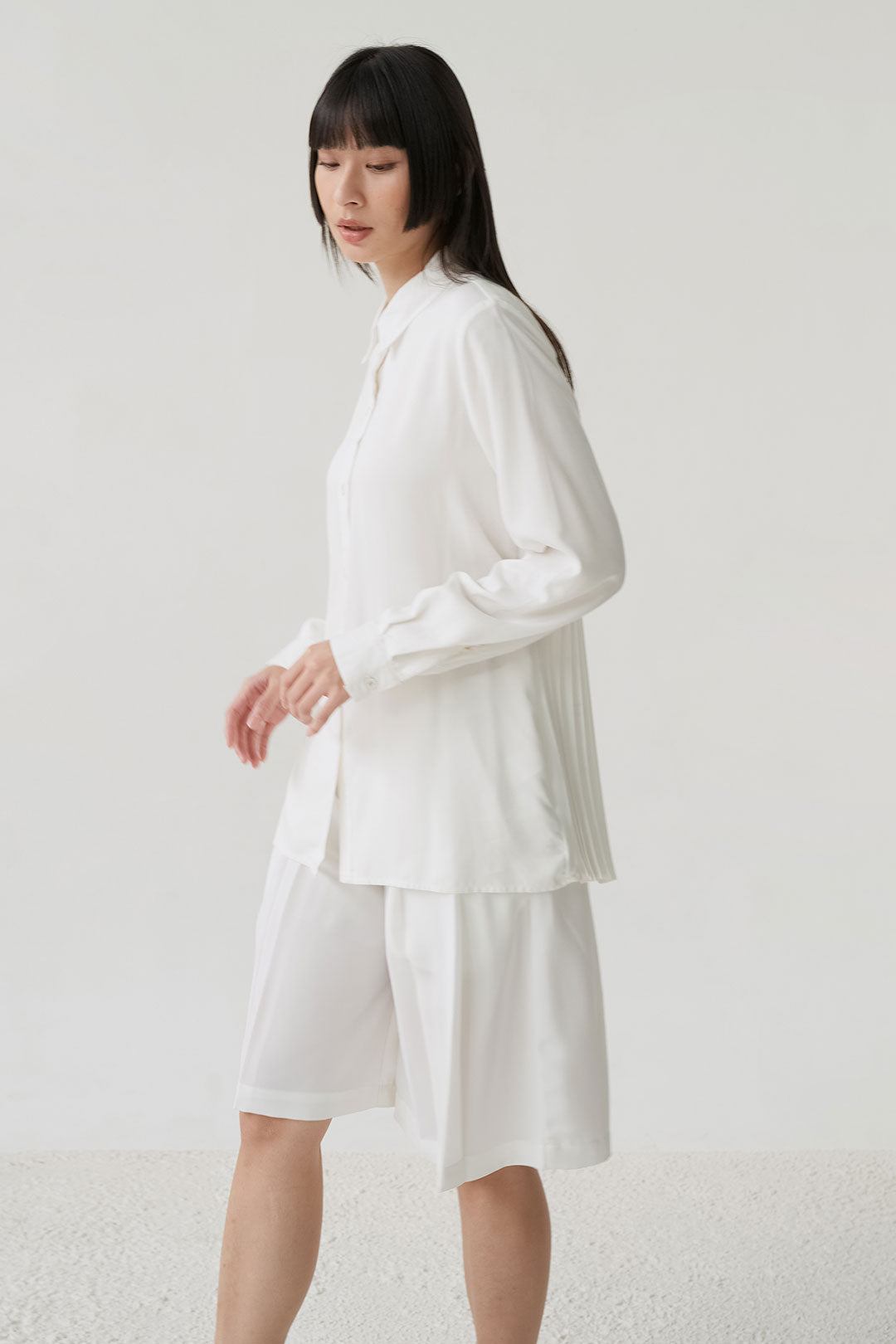 - Button-down shirt with a clean front and pleated back panel, structured yet relaxed