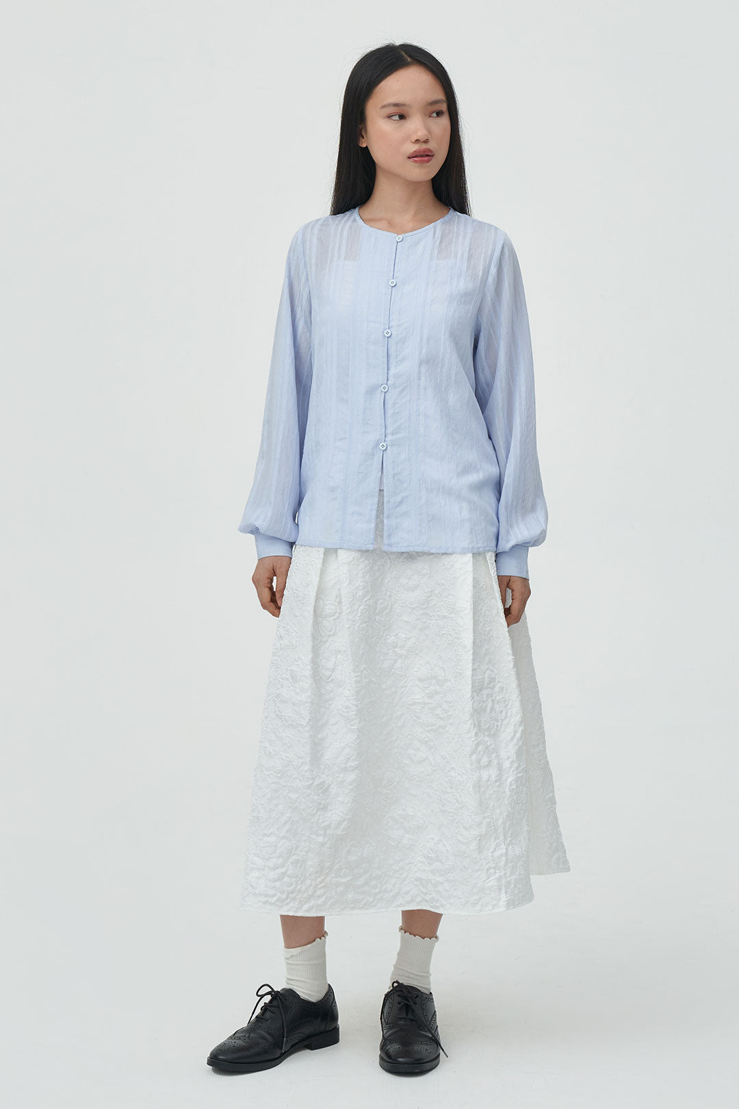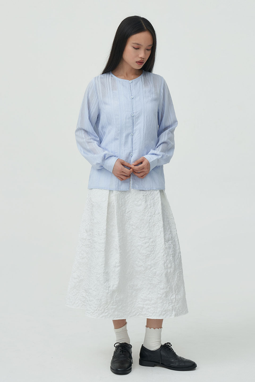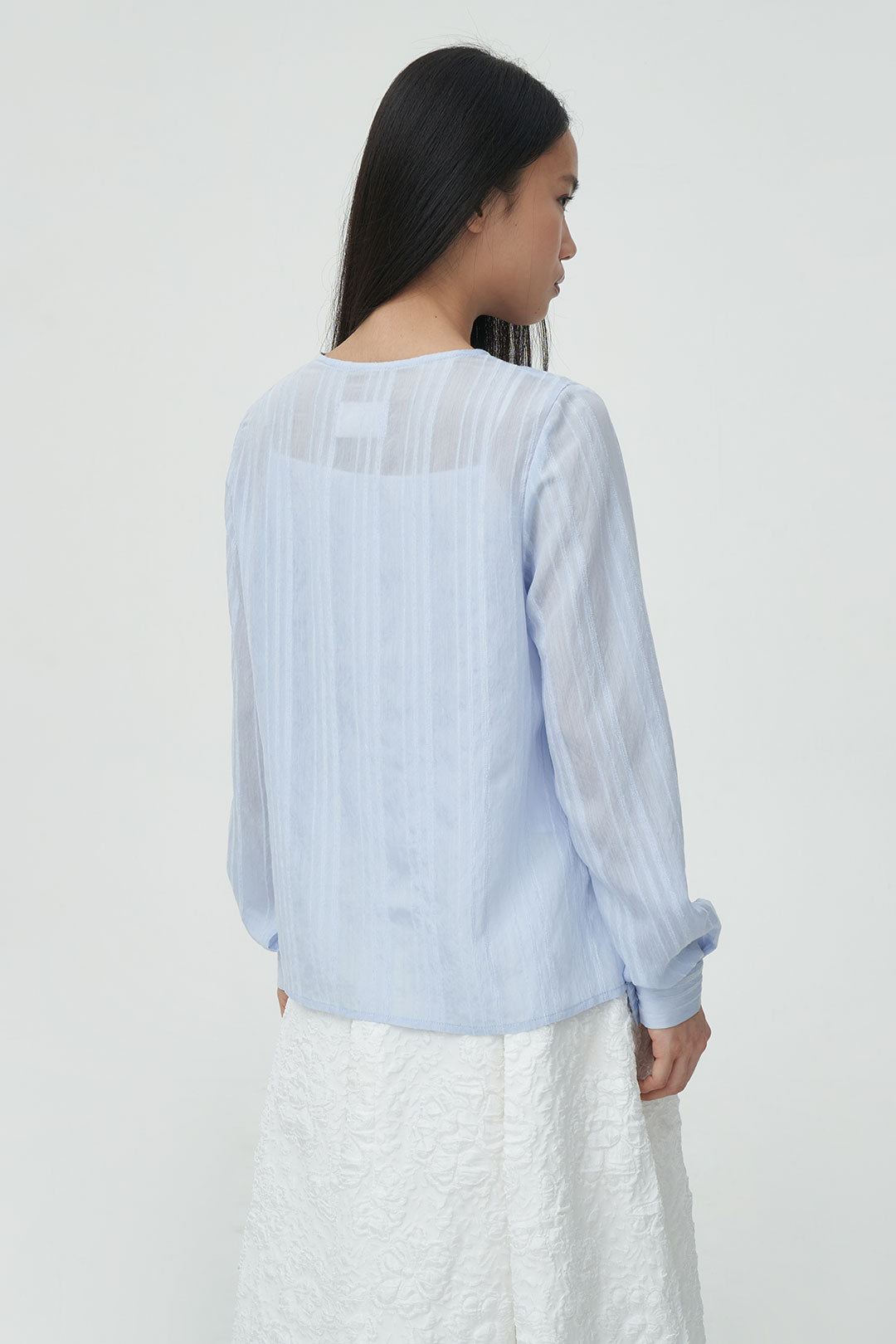 - A lightweight longsleeve blouse with a subtle textured finish for a soft, airy look