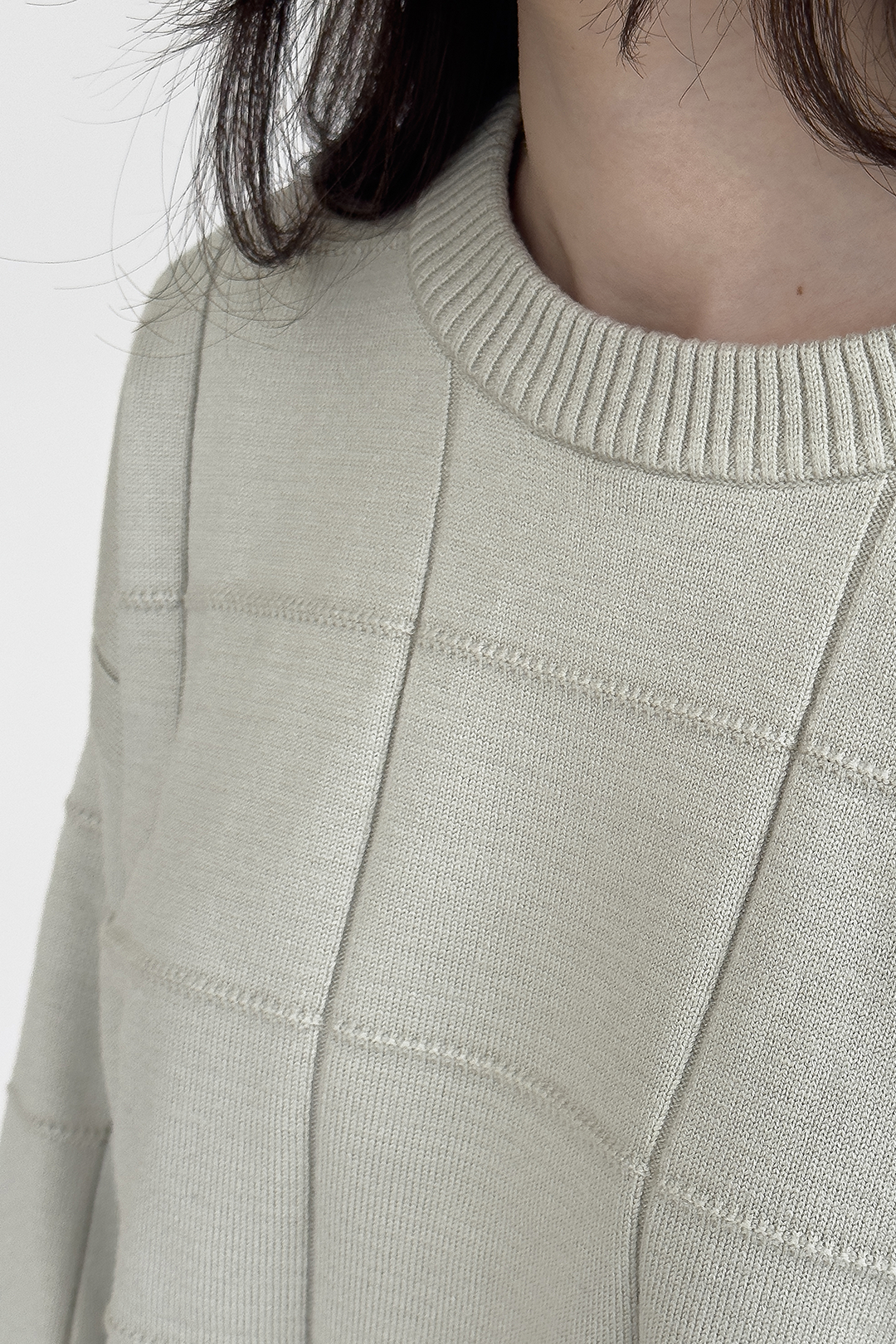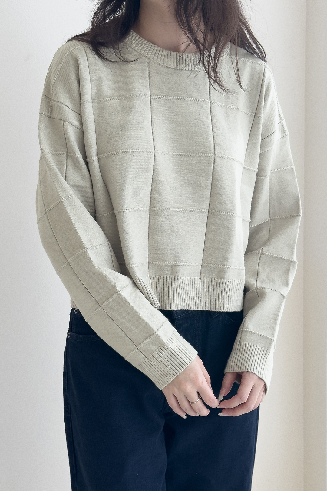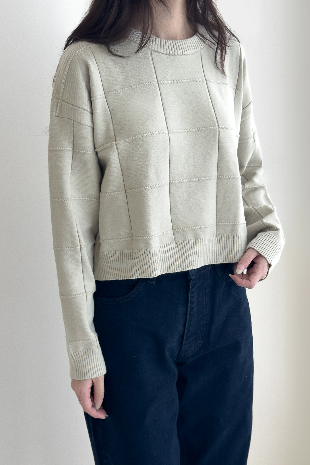 Cropped top knitted top with embossed pattern in long sleeves.