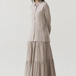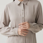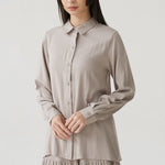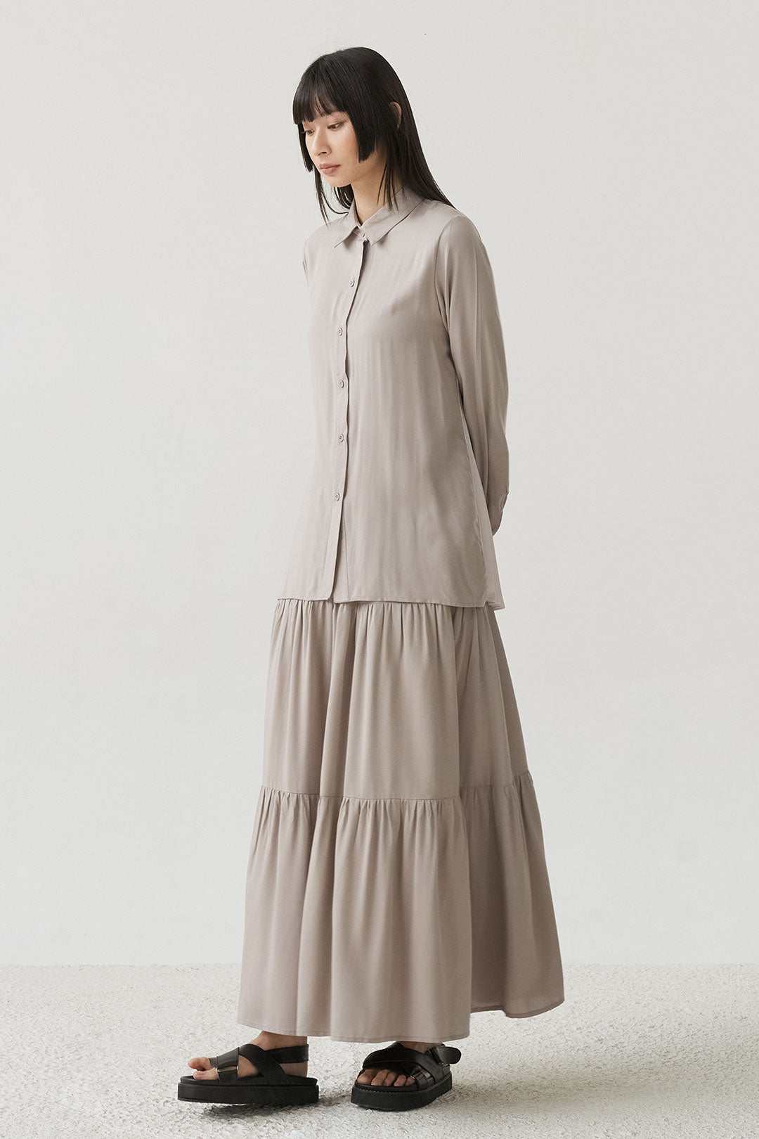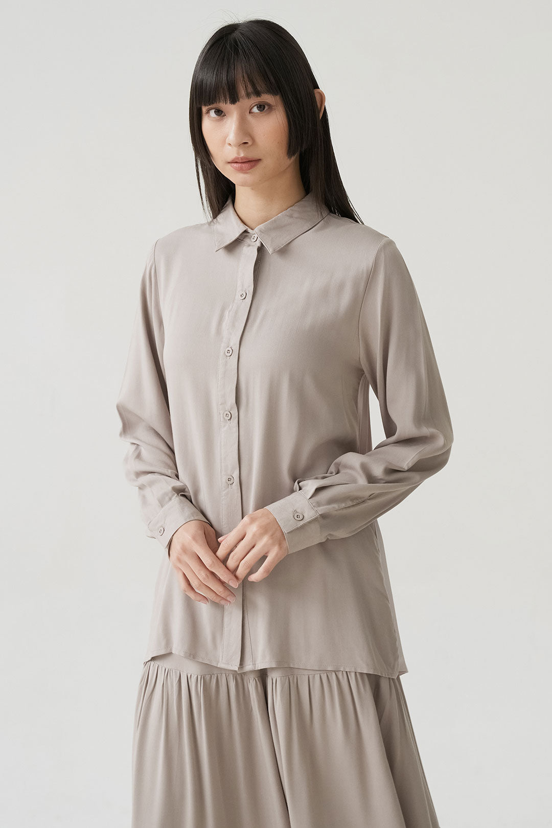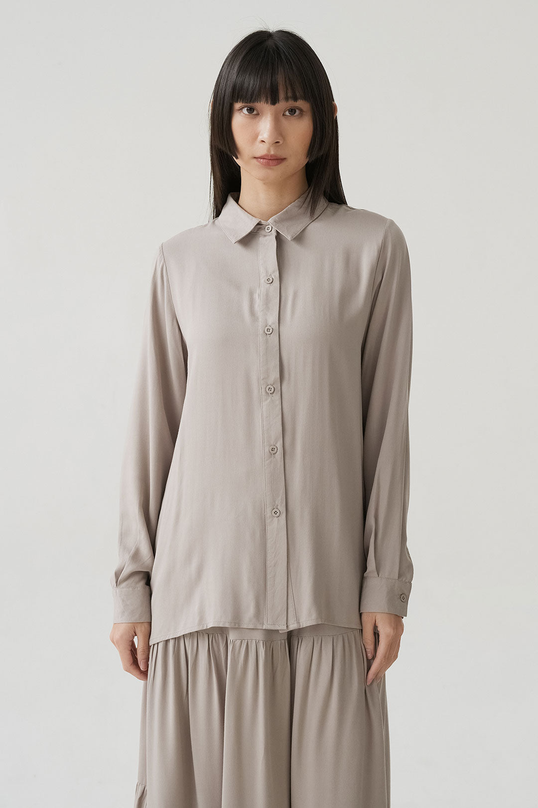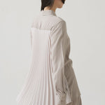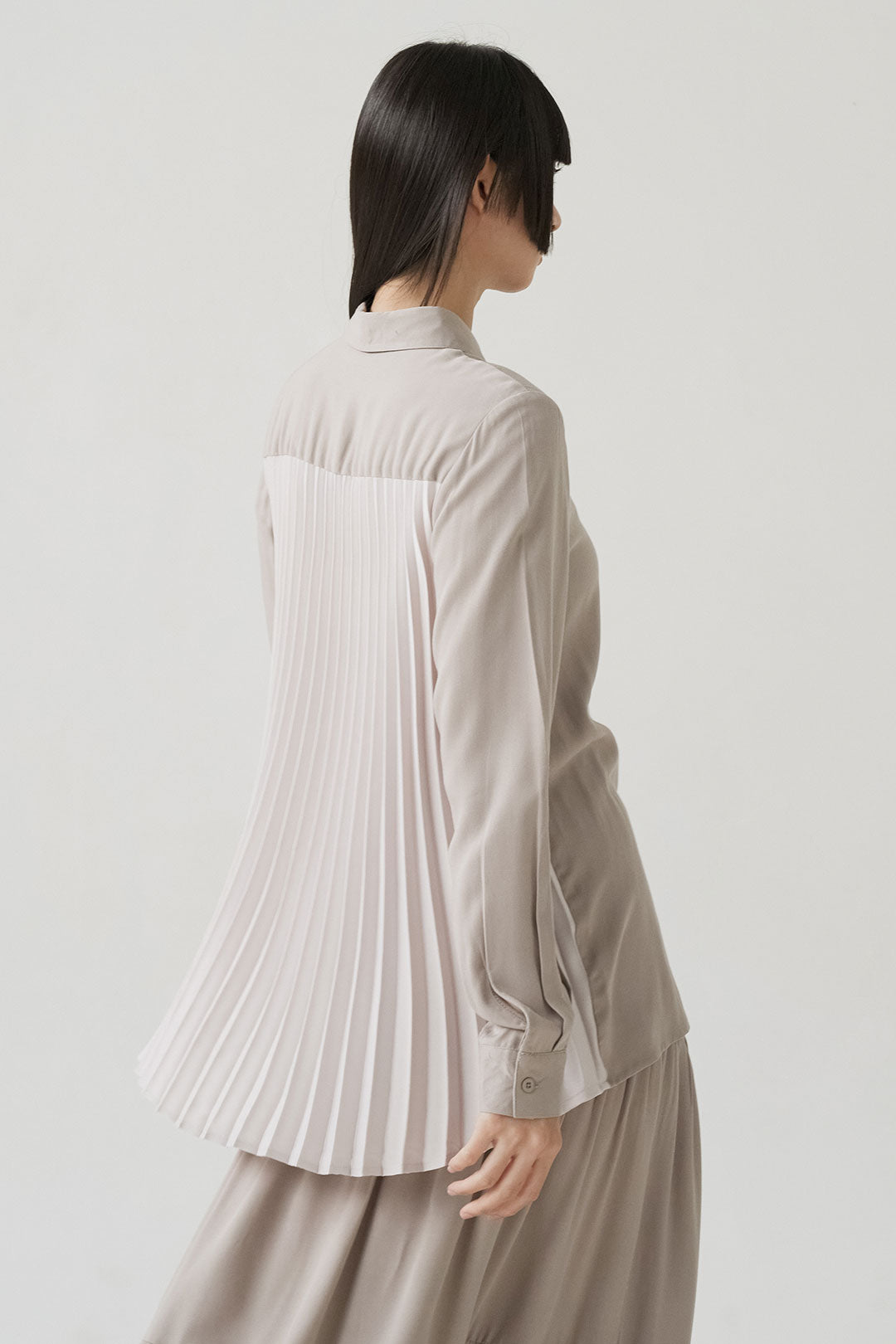 - Button-down shirt with a clean front and pleated back panel, structured yet relaxed
