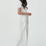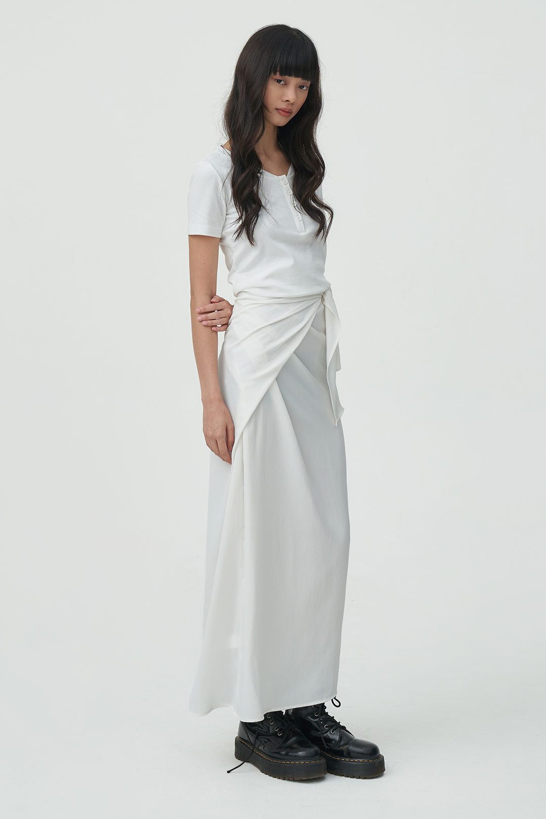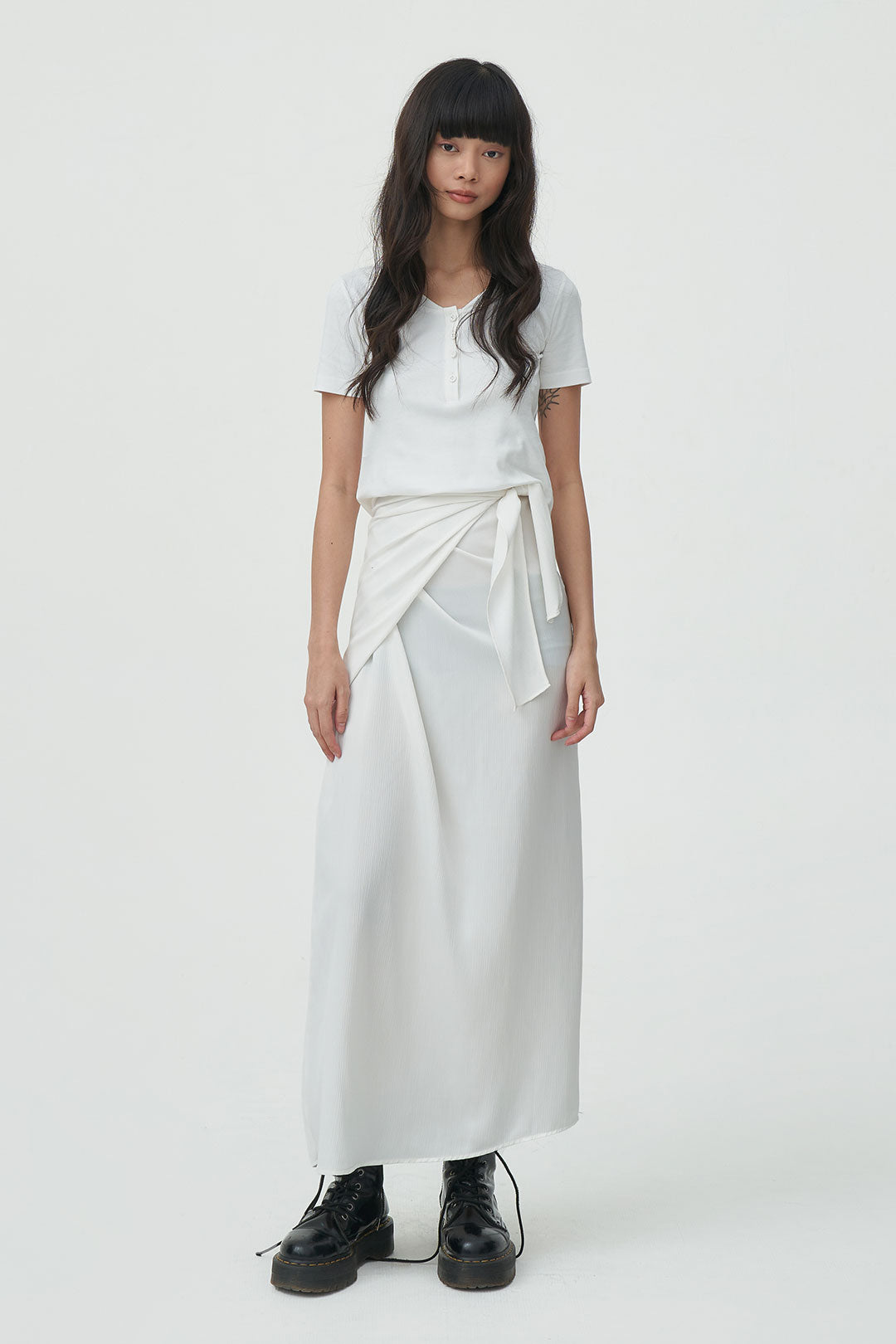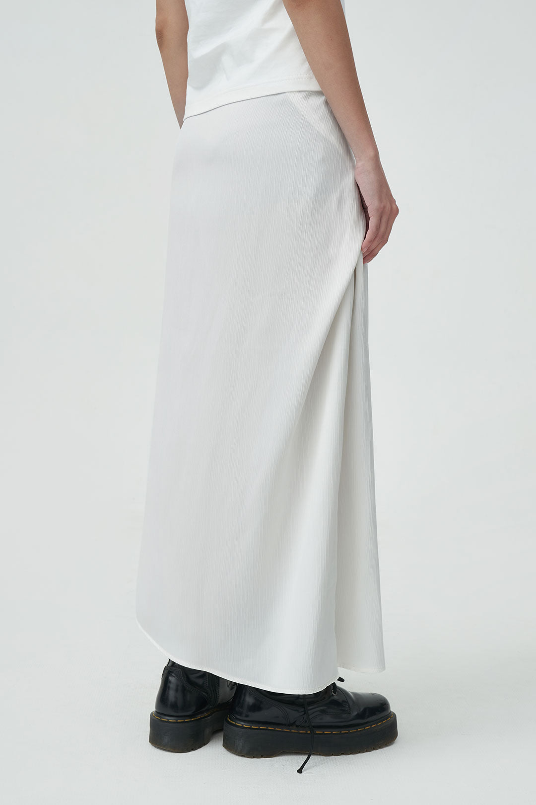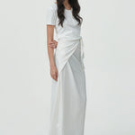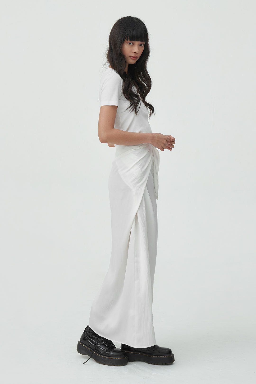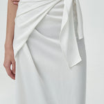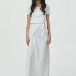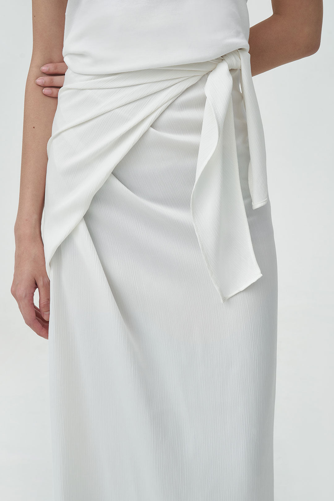 - a satin wrap skirt with a soft, fluid drape that moves effortlessly.